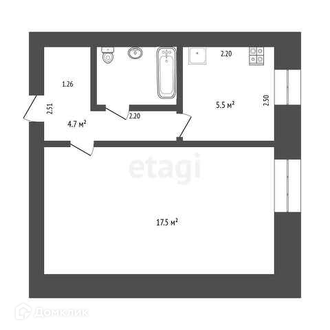 Общая площадь 32.7 м2