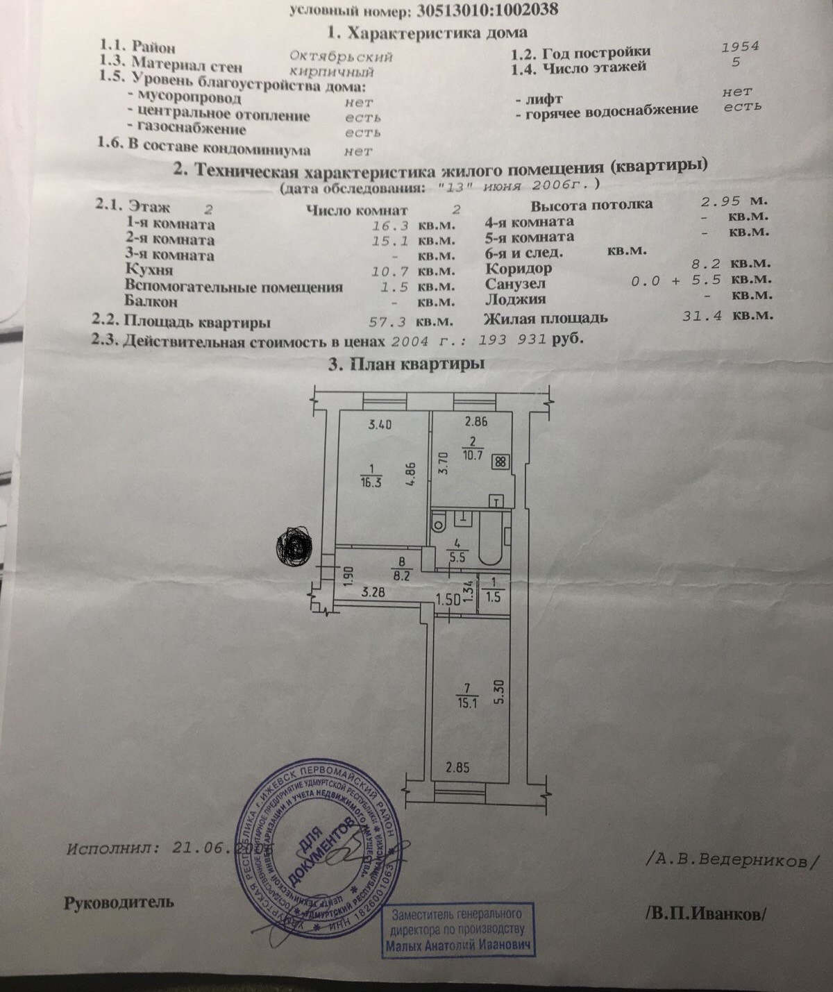 Общая площадь 57.3 м2
