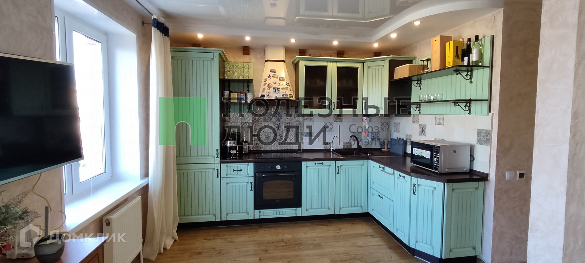 Хороший кухонный гарнитур со встроенной техникой остается в подарок: варочная панель, посудомойка, духовой шкаф, холодильник.
