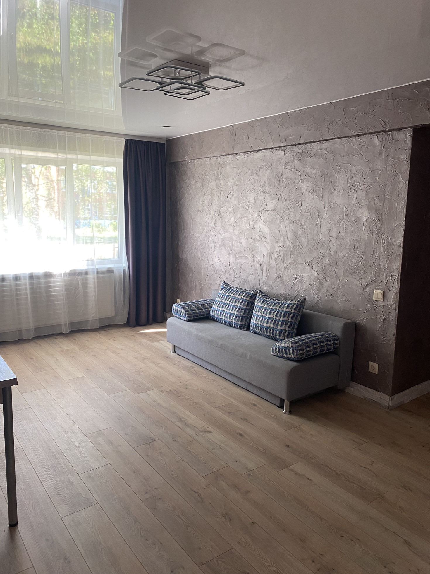 Квартира обклеена дорогими,качественными обоями и выполнена декоративная штукатурка и выложен декоративный камень!