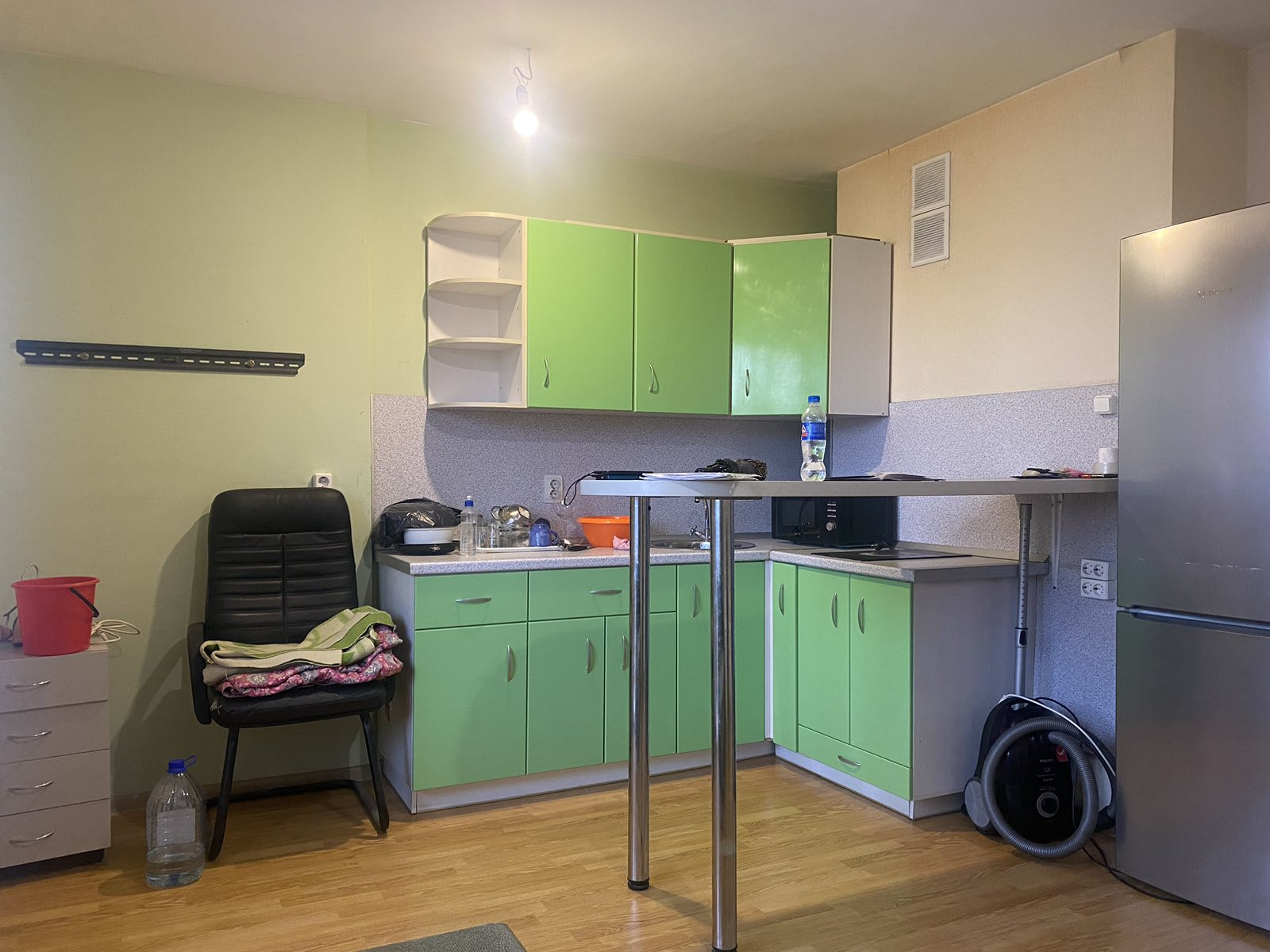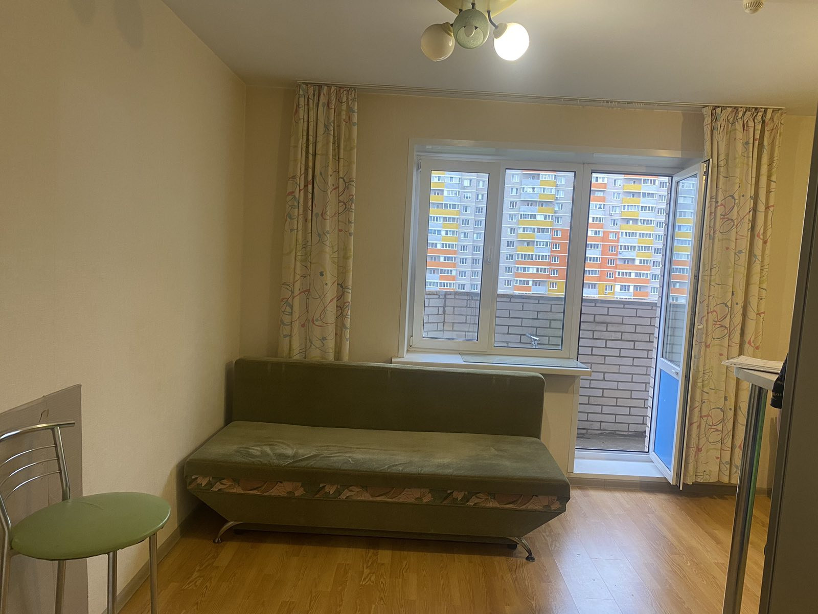 9й этаж, состояние хорошее, остается кухонный гарнитур, чистая продажа.