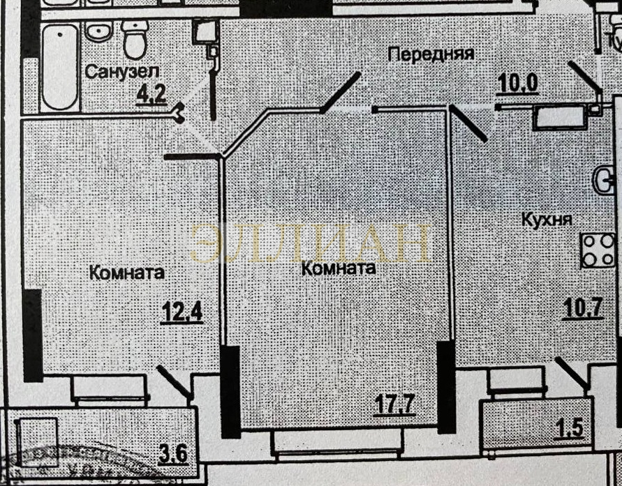 * Комната 1 - 17.7 кв