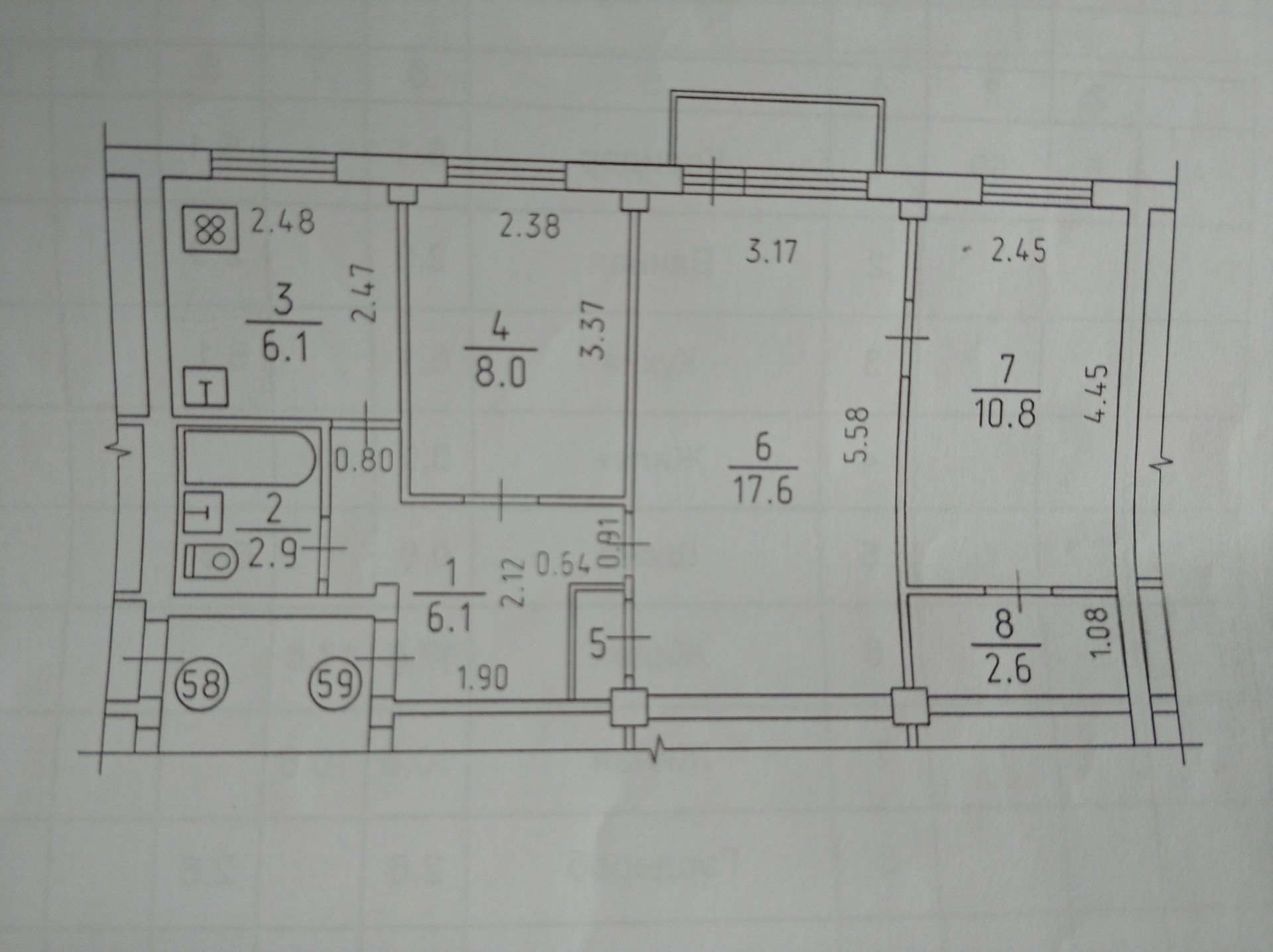 Общая площадь 54.9 м2