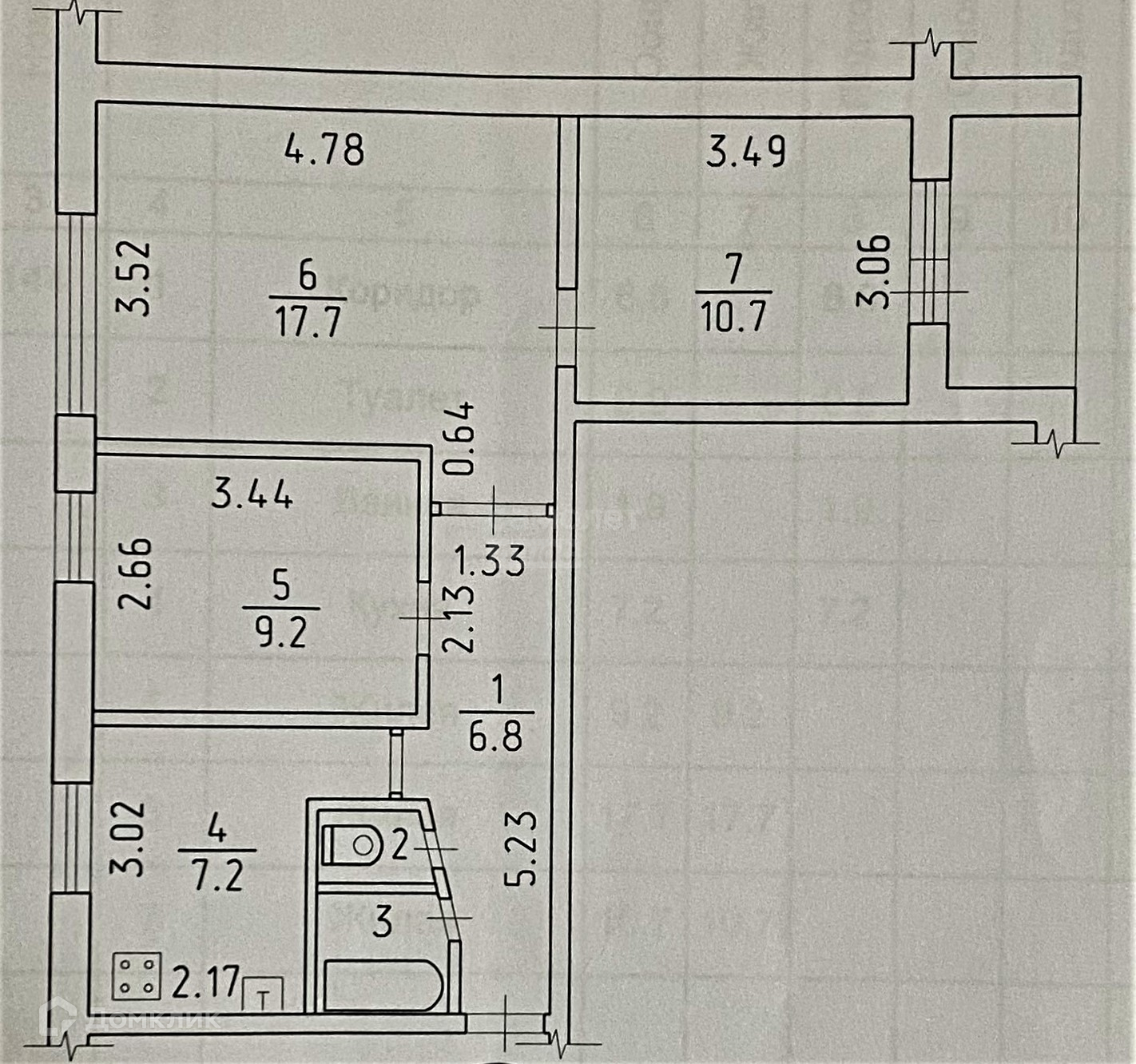 Общая площадь 54.4 м2