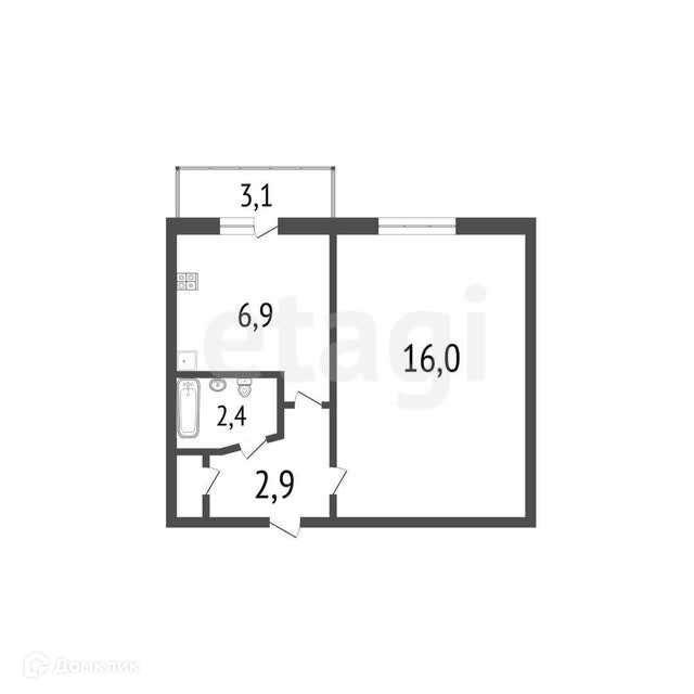 Общая площадь 28.6 м2