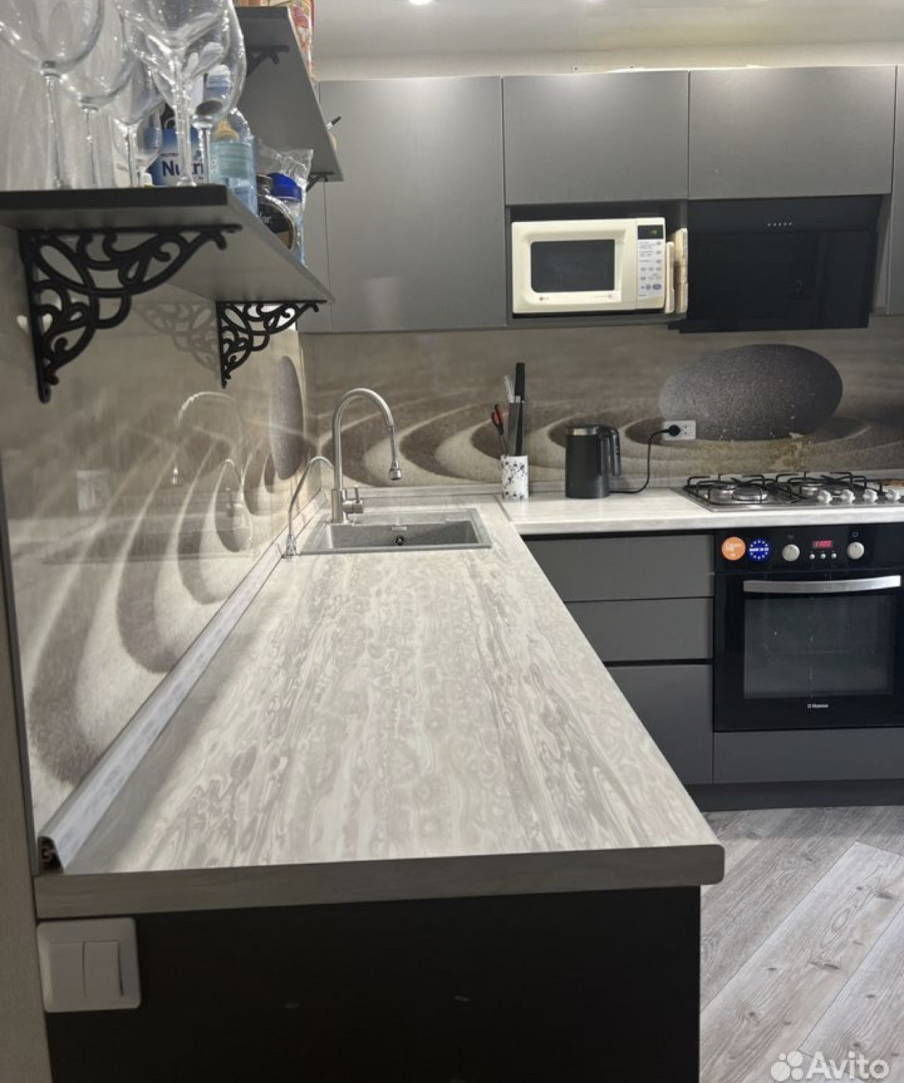 В кухне остаётся кухонный гарнитур, варочная панель, вытяжка, печка, посудомоечная машина аристон (большая).