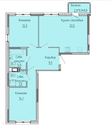 Общая площадь 67.3 м2