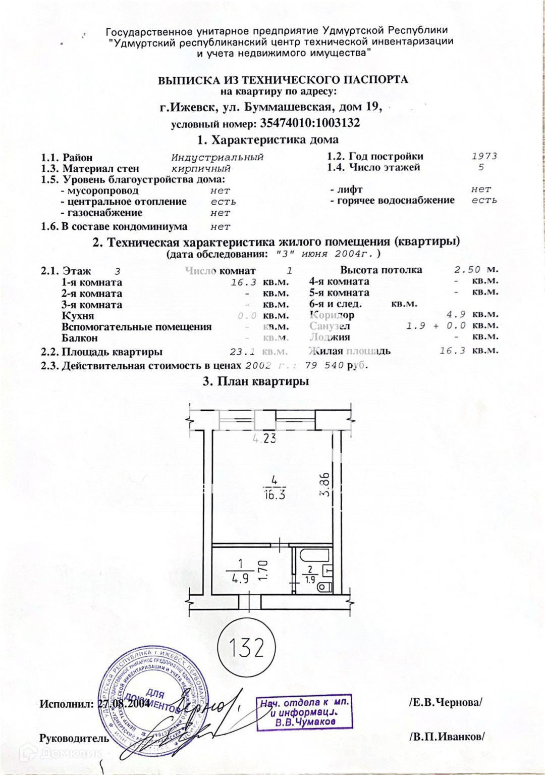 Квартира студия, 23.1 м2, этаж 3 / 5, на продажу в Ижевске, Буммашевская улица, 19