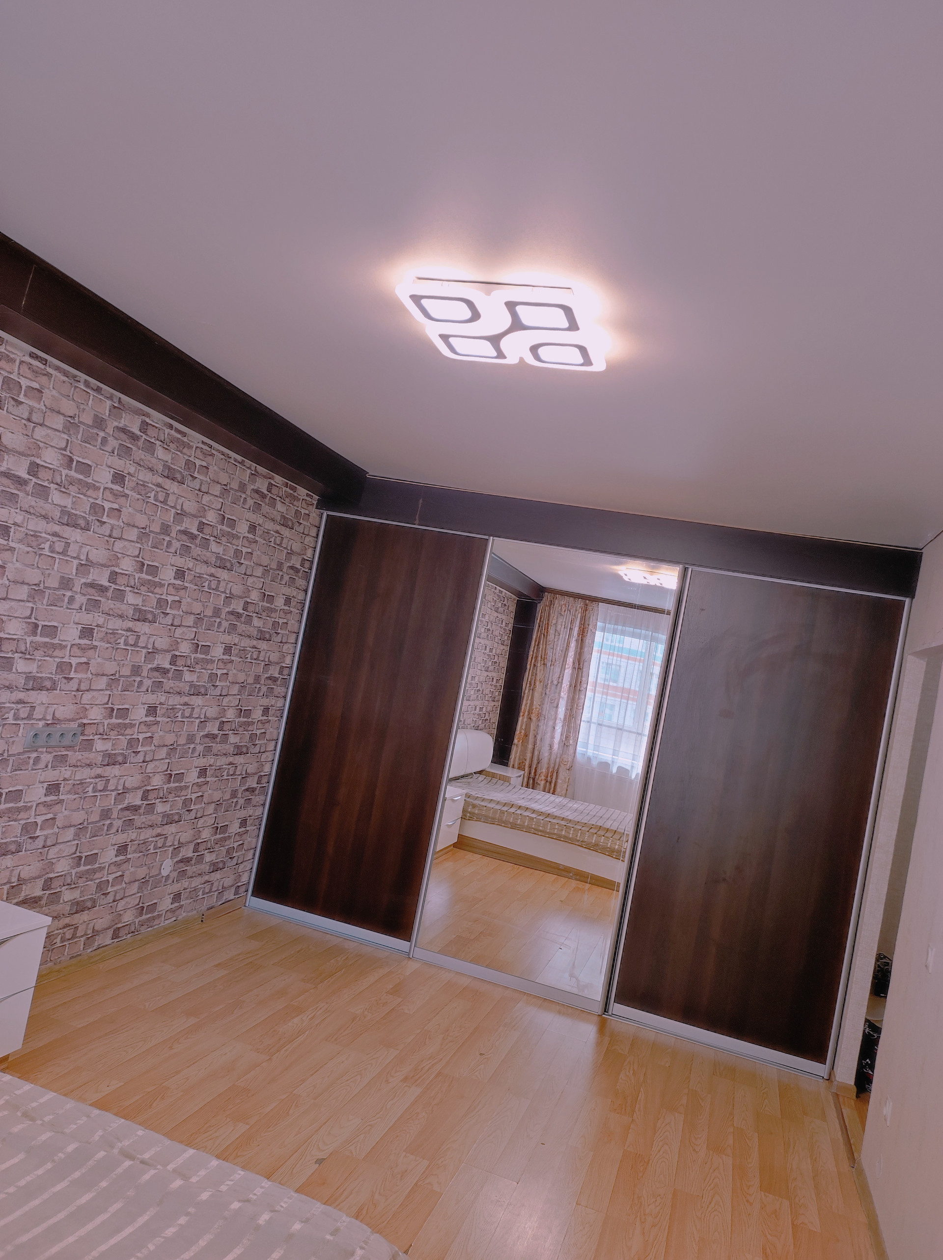 Натяжные потолки, светодиодные светильники, хорошая качественная входная дверь, в большой комнате оборудована просторная гардеробная.
