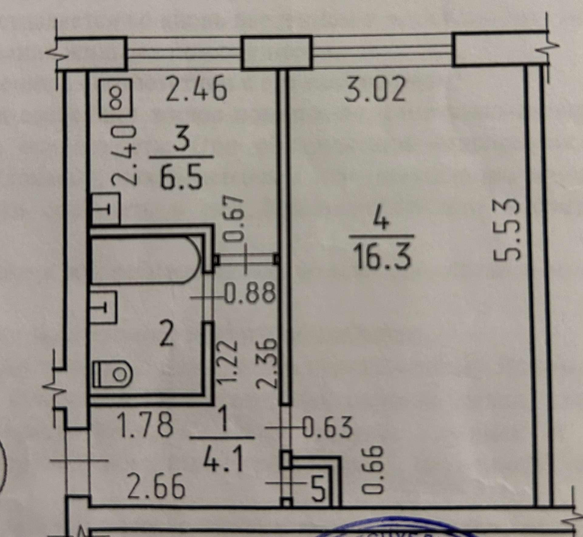 Жилая площадь 16.3 м2