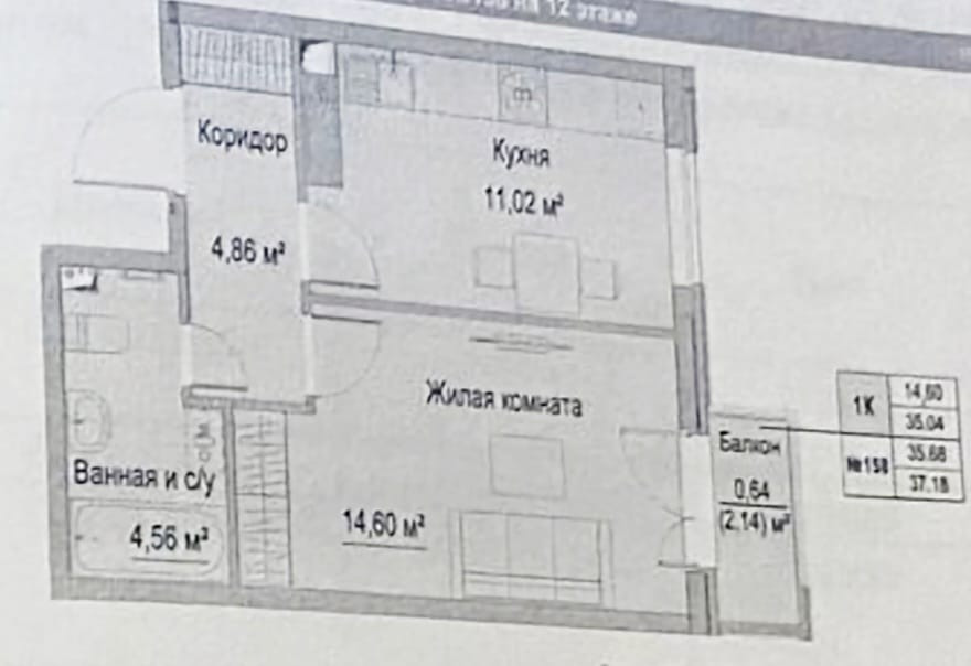 Общая площадь 37.18 м2