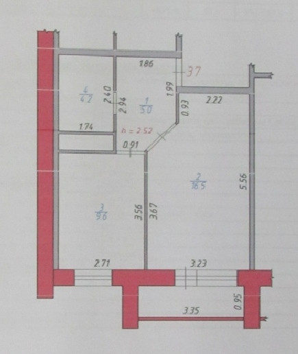 Общая площадь 35.3 м2