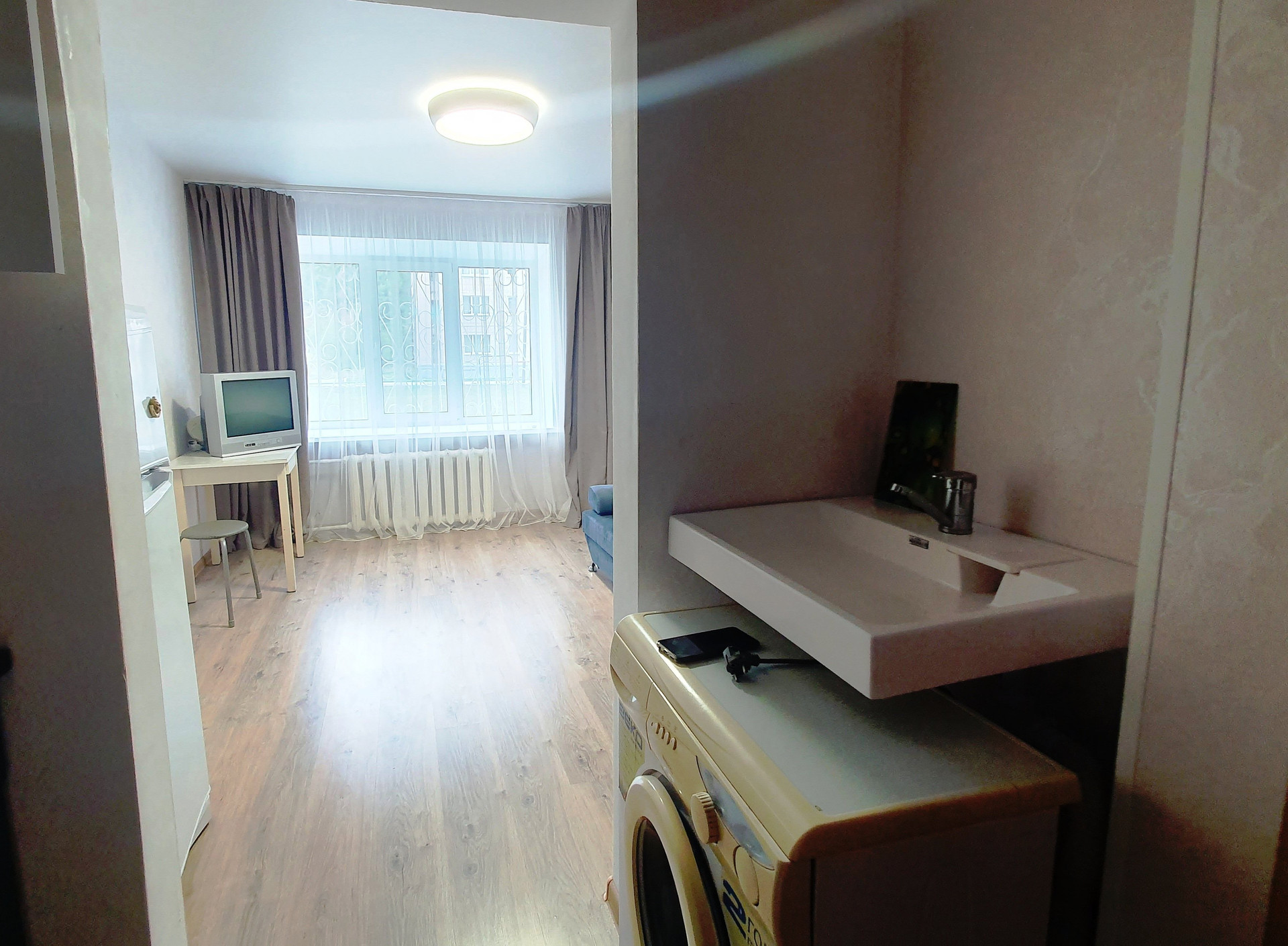 Продается квартира-студия в отличном состоянии,можно заехать и жить. Установлена душевая кабина,в санузлах есть ремонт,поменяны трубы. Пластиковое окно,на полу ламинат, натяжные потолки. В квартире остается вся мебель и техника( холодильник,стиральная машина,электроплита). Квартира в чистой продаже ,один взрослый собственник. Показ по договоренности,ключи в день полных расчетов.
