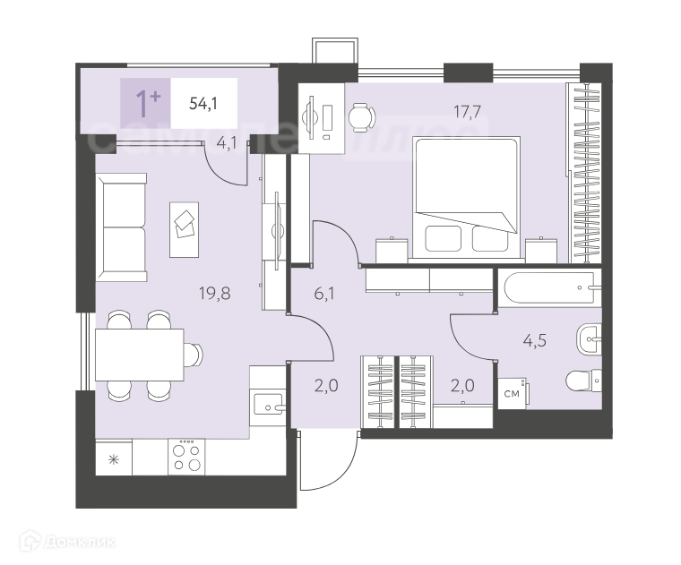 Общая площадь 54.1 м2