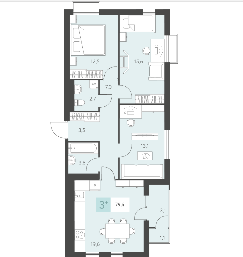 Общая площадь 79 м2