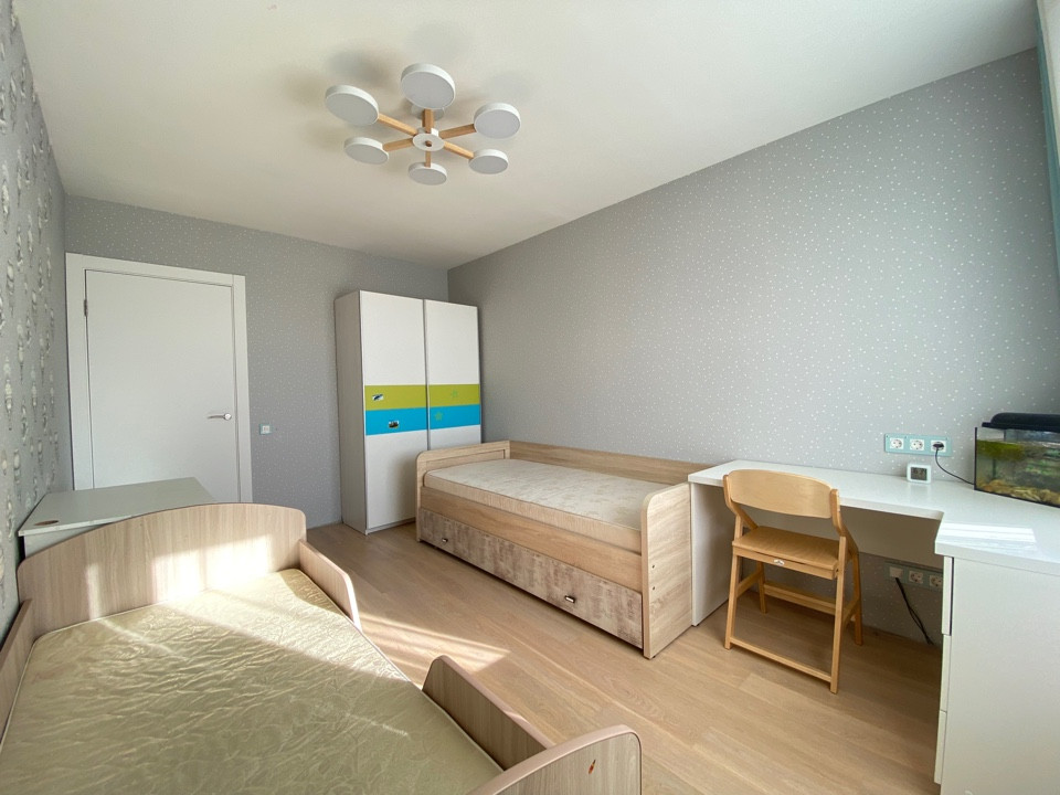3 изолированные спальни, гостиная, есть кабинет и большая гардеробная.