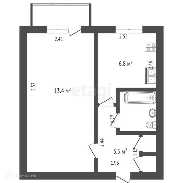 Балкон, лоджия 1 балкон