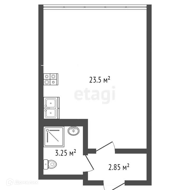 Общая площадь 23.5 м2