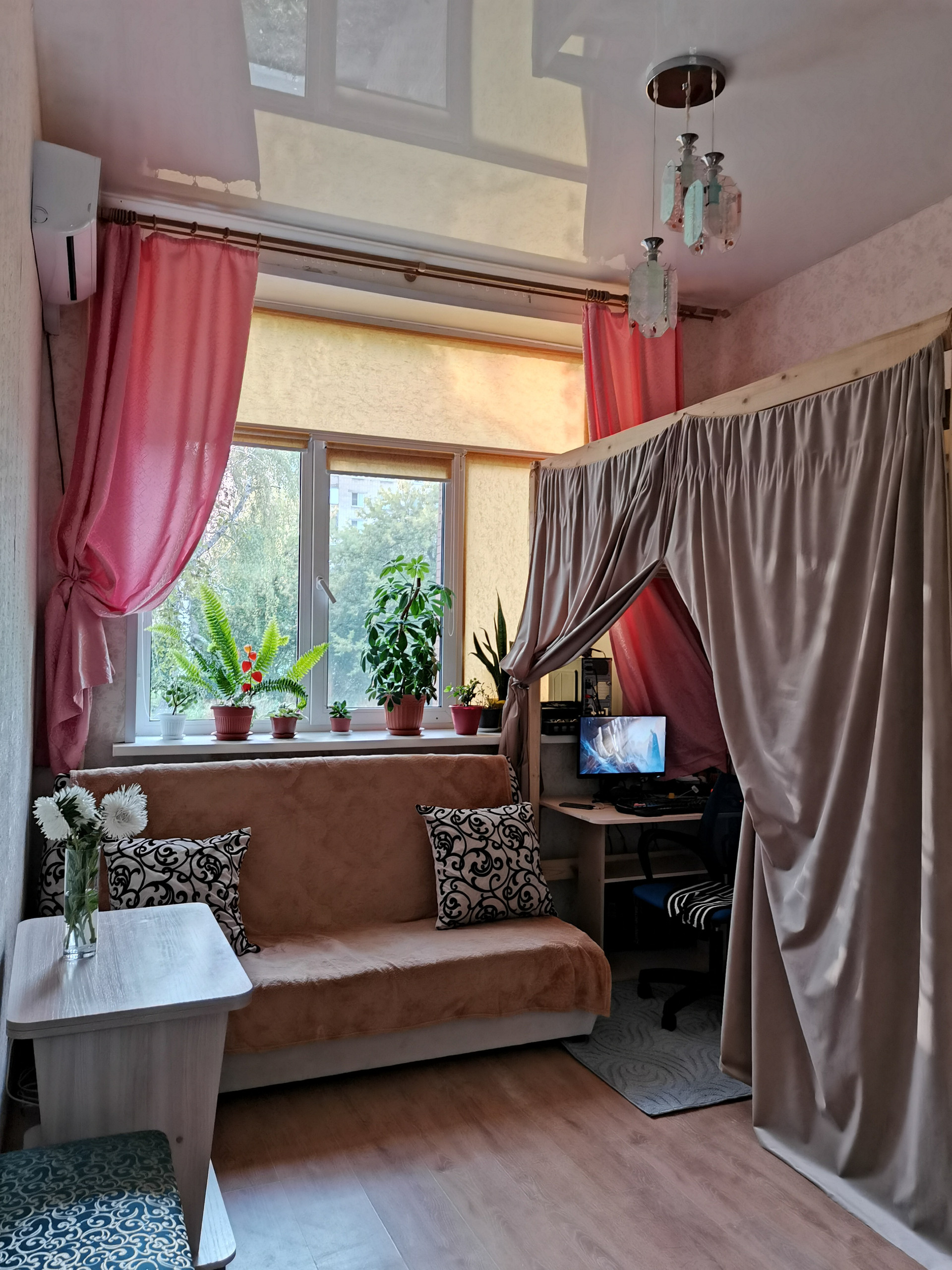 Необычная светлая квартира-студия 19 кв. м с трехметровыми потолками и огромным окном.