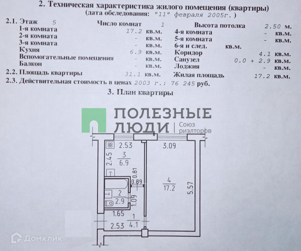 Общая площадь 31.1 м2