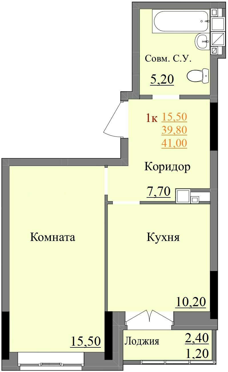 Общая площадь 39.8 м2