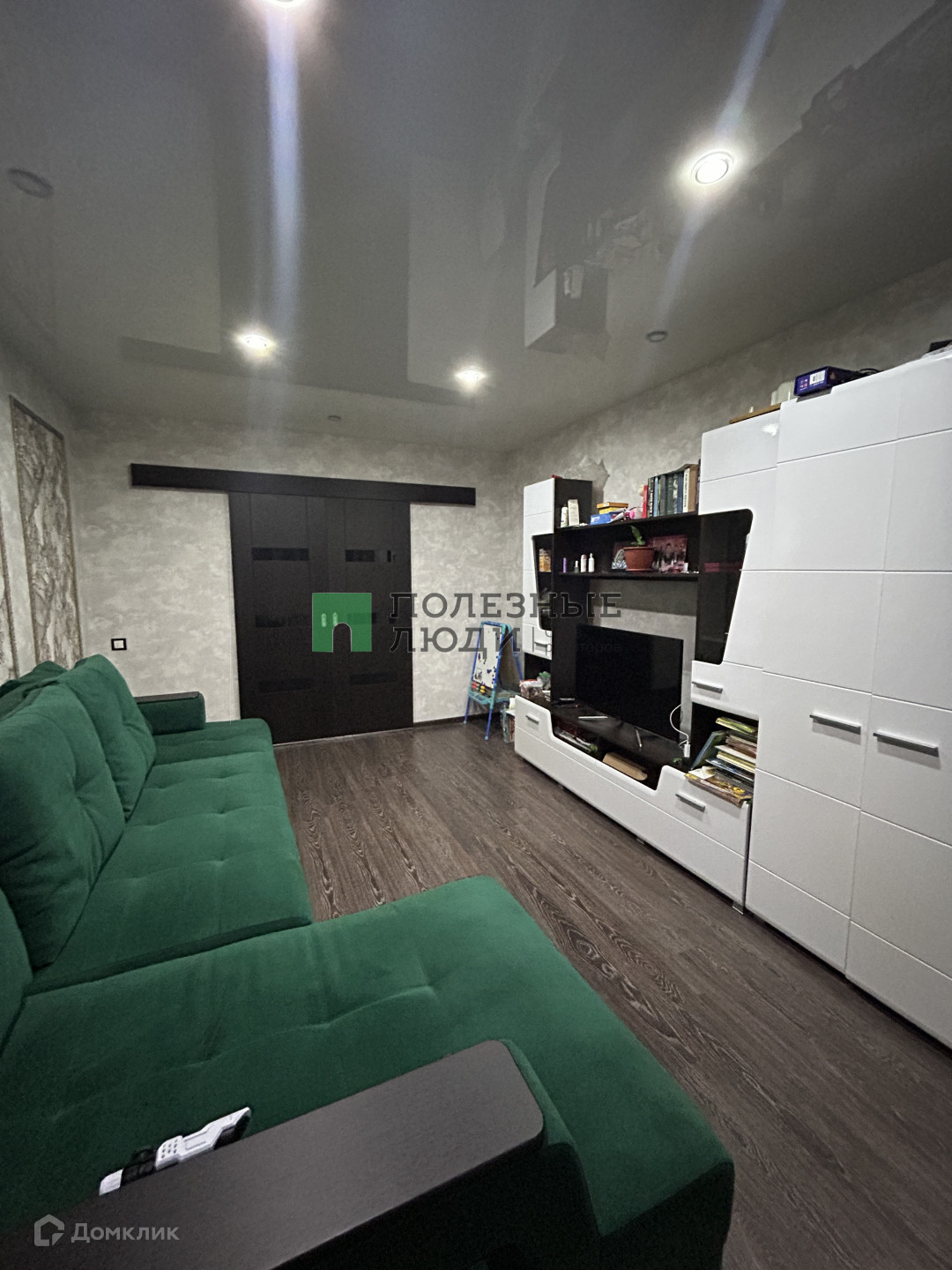 В квартире выполнен ремонт: на полу ламинат 33 класса, натяжные потолки с точечным освещением, на стенах качественные обои.
