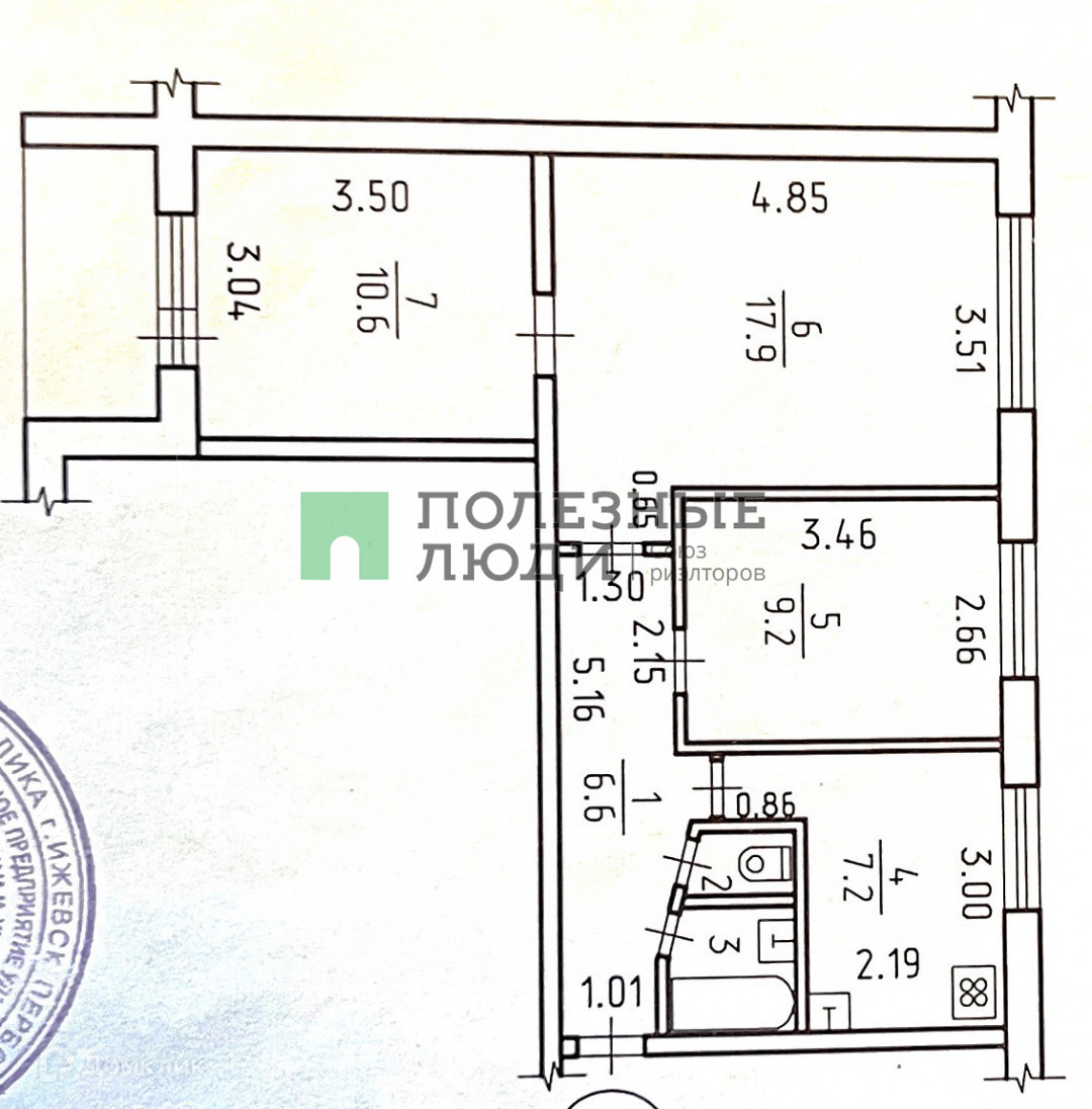 3-комнатная квартира, 54.3 м2, этаж 4 / 9, на продажу в Ижевске, улица 10 лет Октября, 7