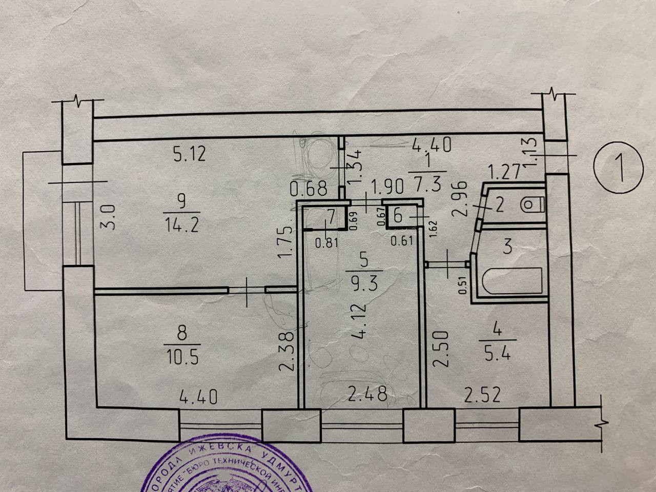 Площадь кухни 5.4 м2