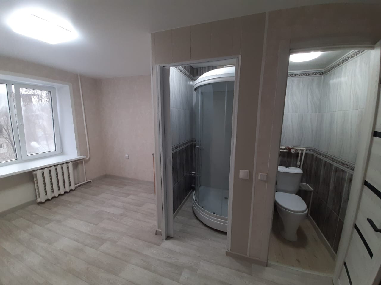 — Новая душевая кабинка, с новым унитазом, полностью новая сантехника.
