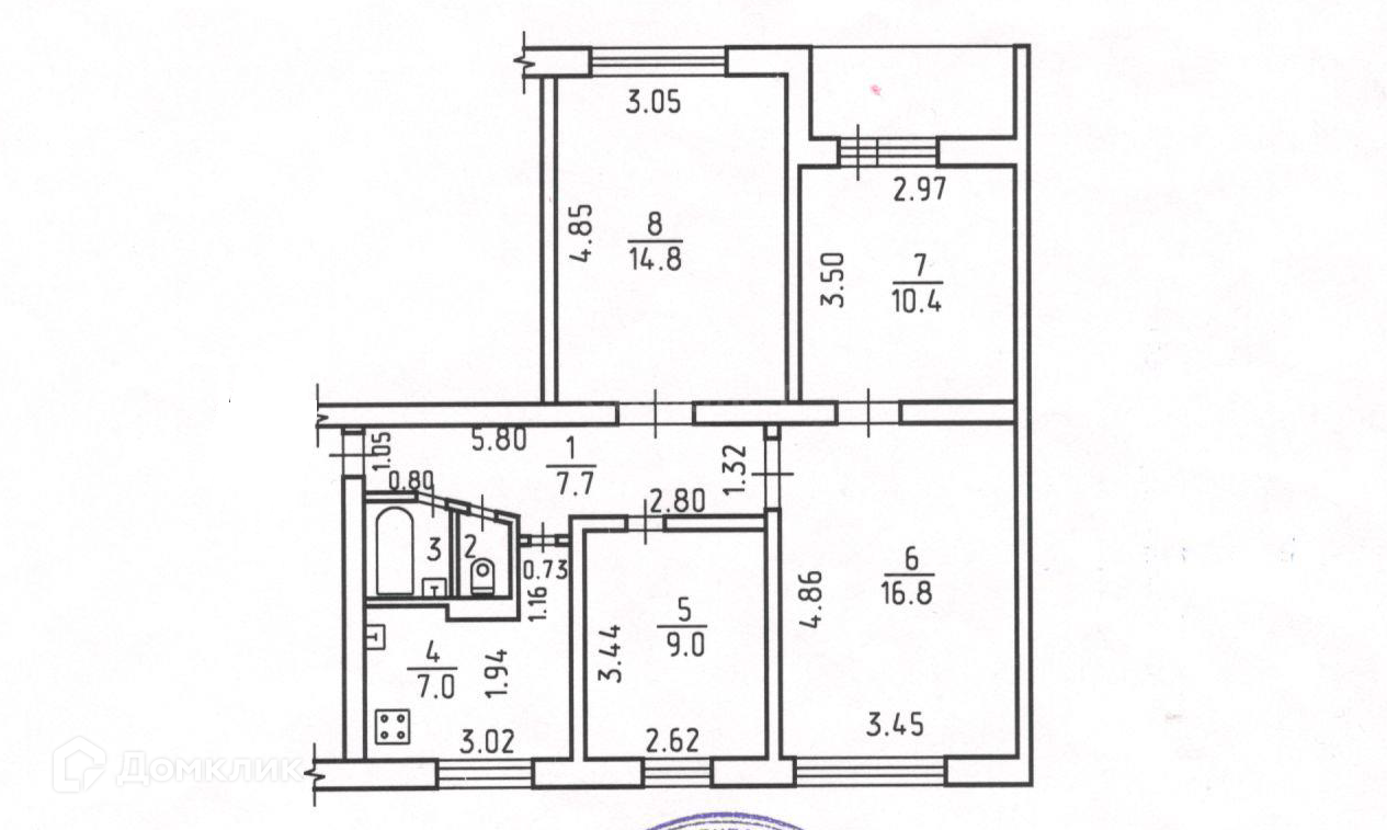 Общая площадь 68.7 м2