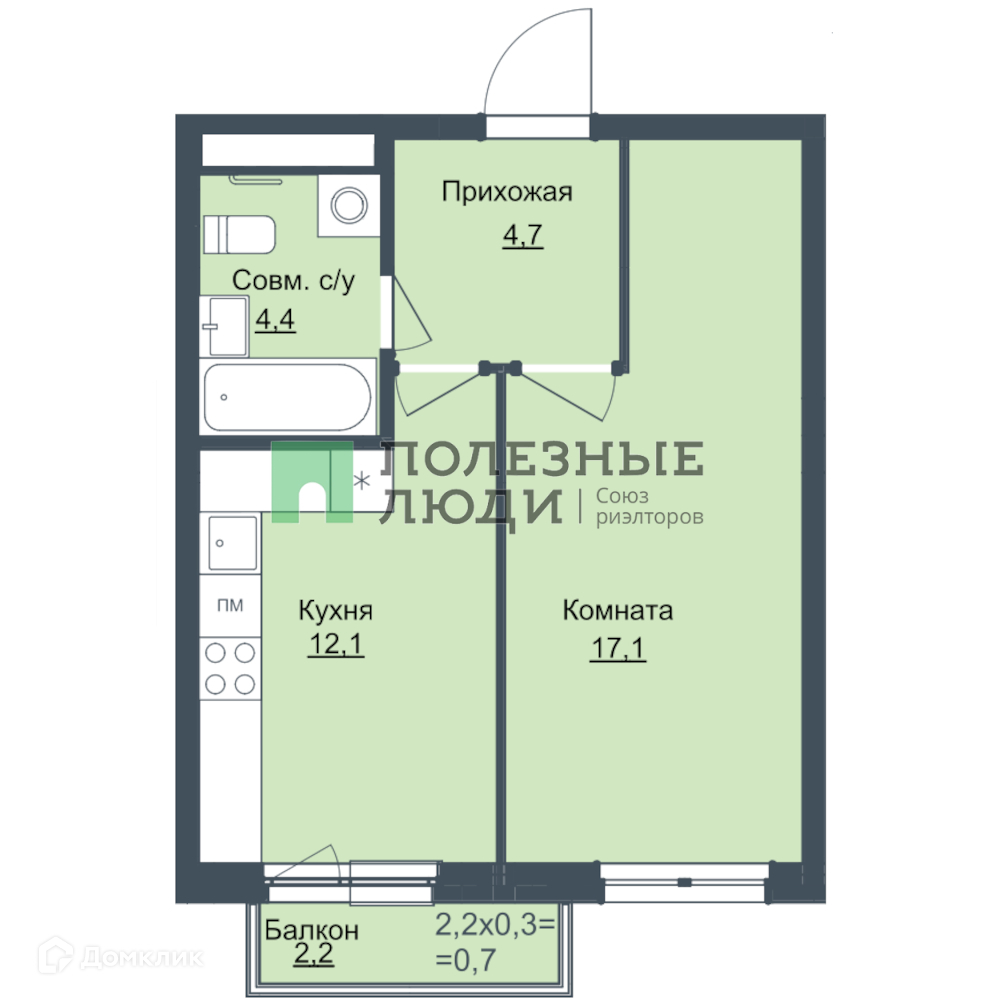 Жилая площадь 17.1 м2