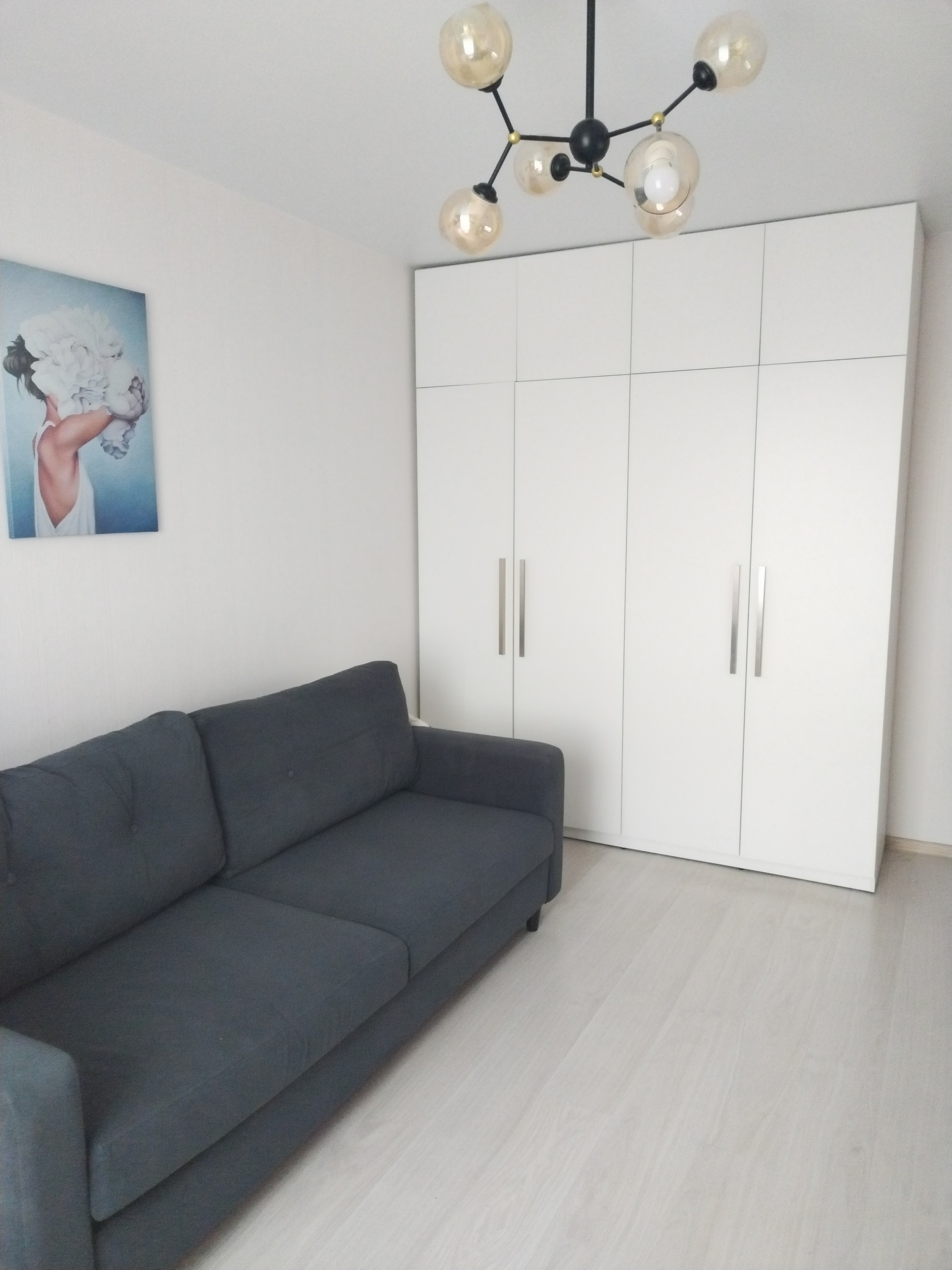 Остаётся стильный, удобный кухонный гарнитур, а также большие вместительные шкафы в комнате и прихожей