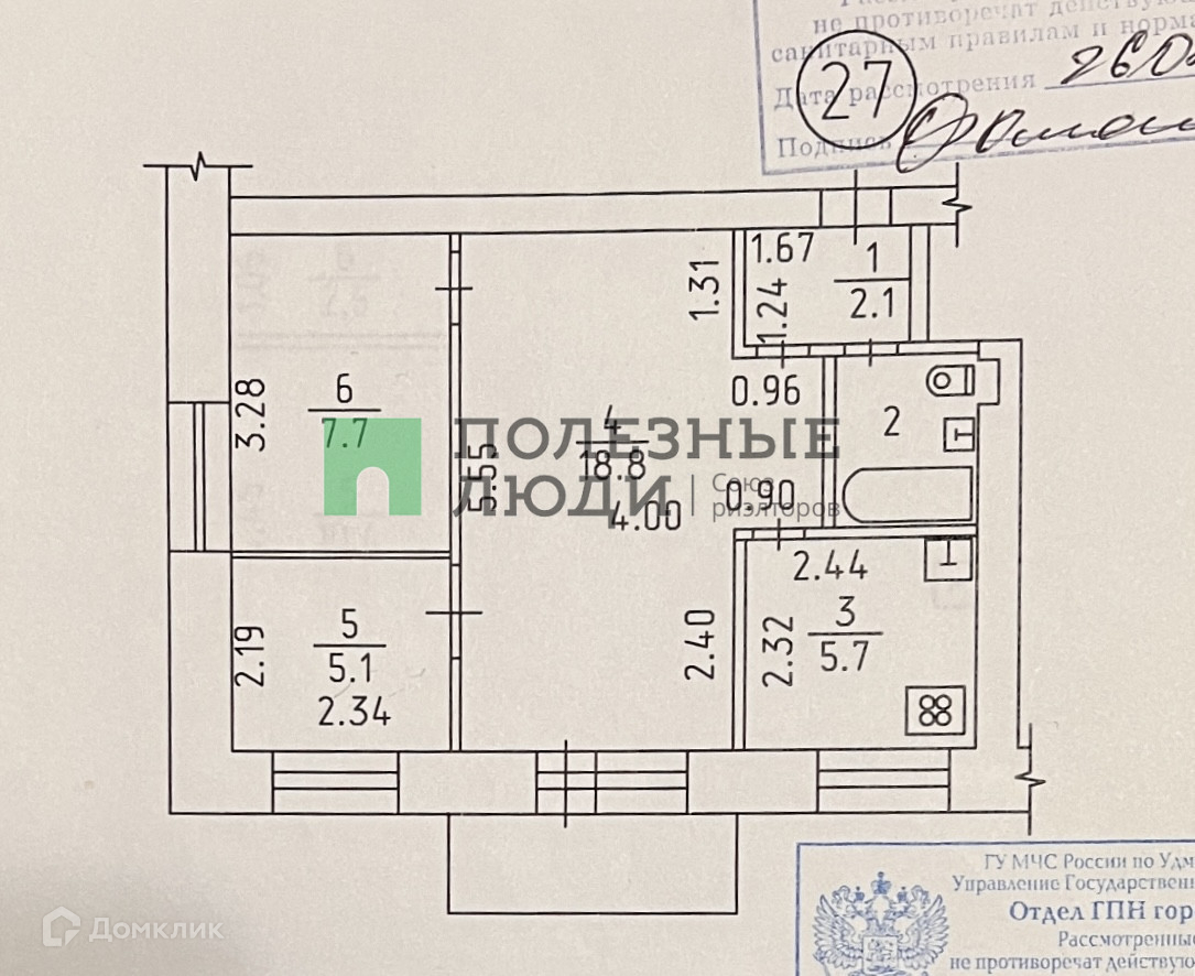 3-комнатная квартира, 42.3 м2, этаж 2 / 5, на продажу в Ижевске, Воткинское шоссе, 130