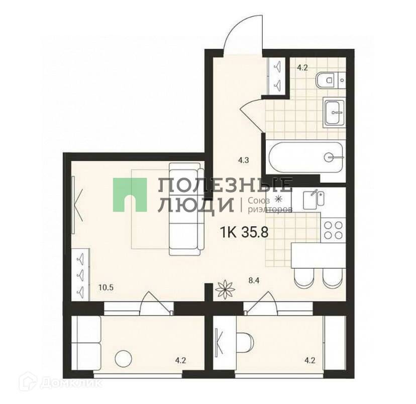 Общая площадь 34 м2