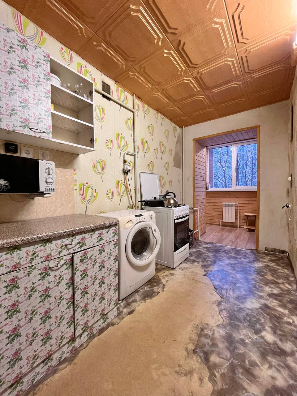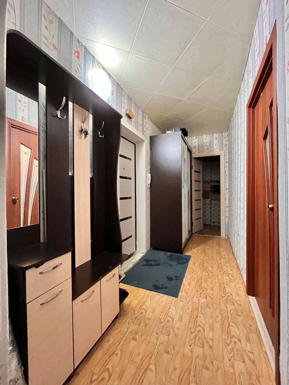 Удобная планировка квартиры: 2 две большие изолированные комнаты, просторная кухня, длинный коридор, есть отдельное место для хранения посуды ( по типу темной комнаты).