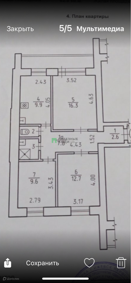 Общая площадь 63 м2