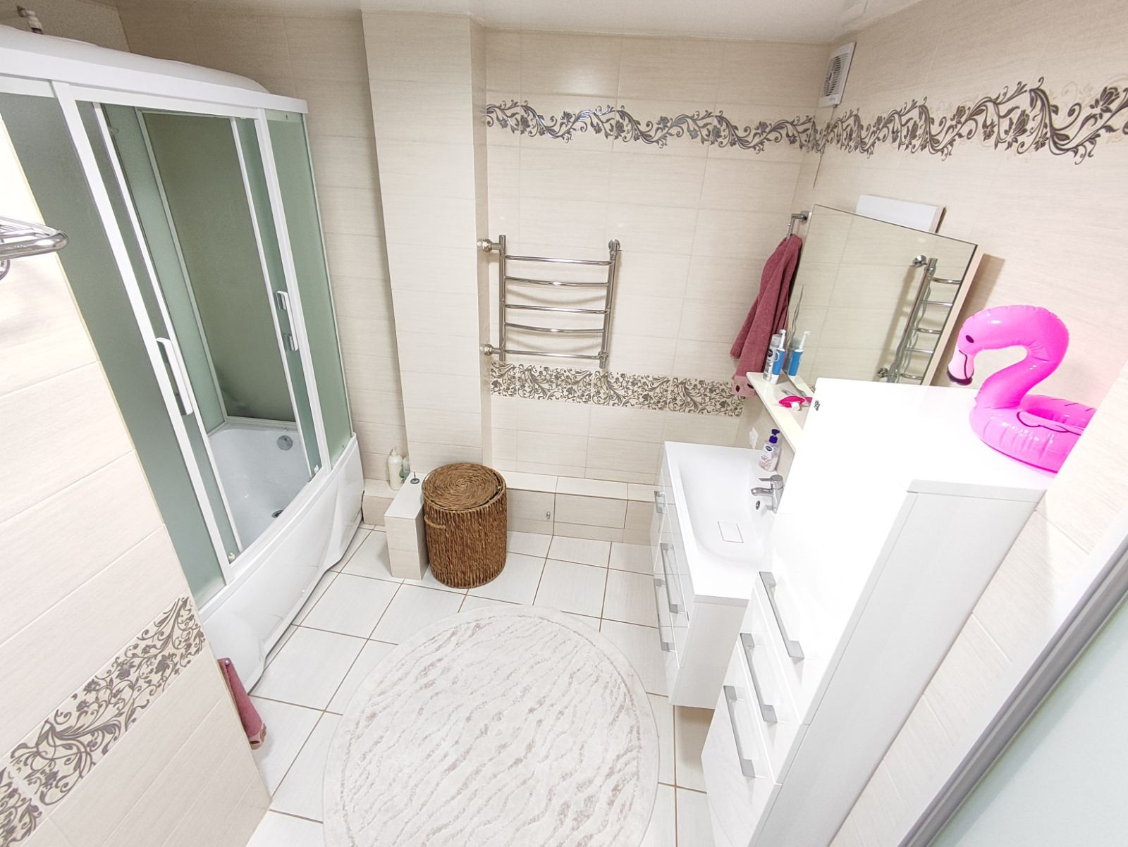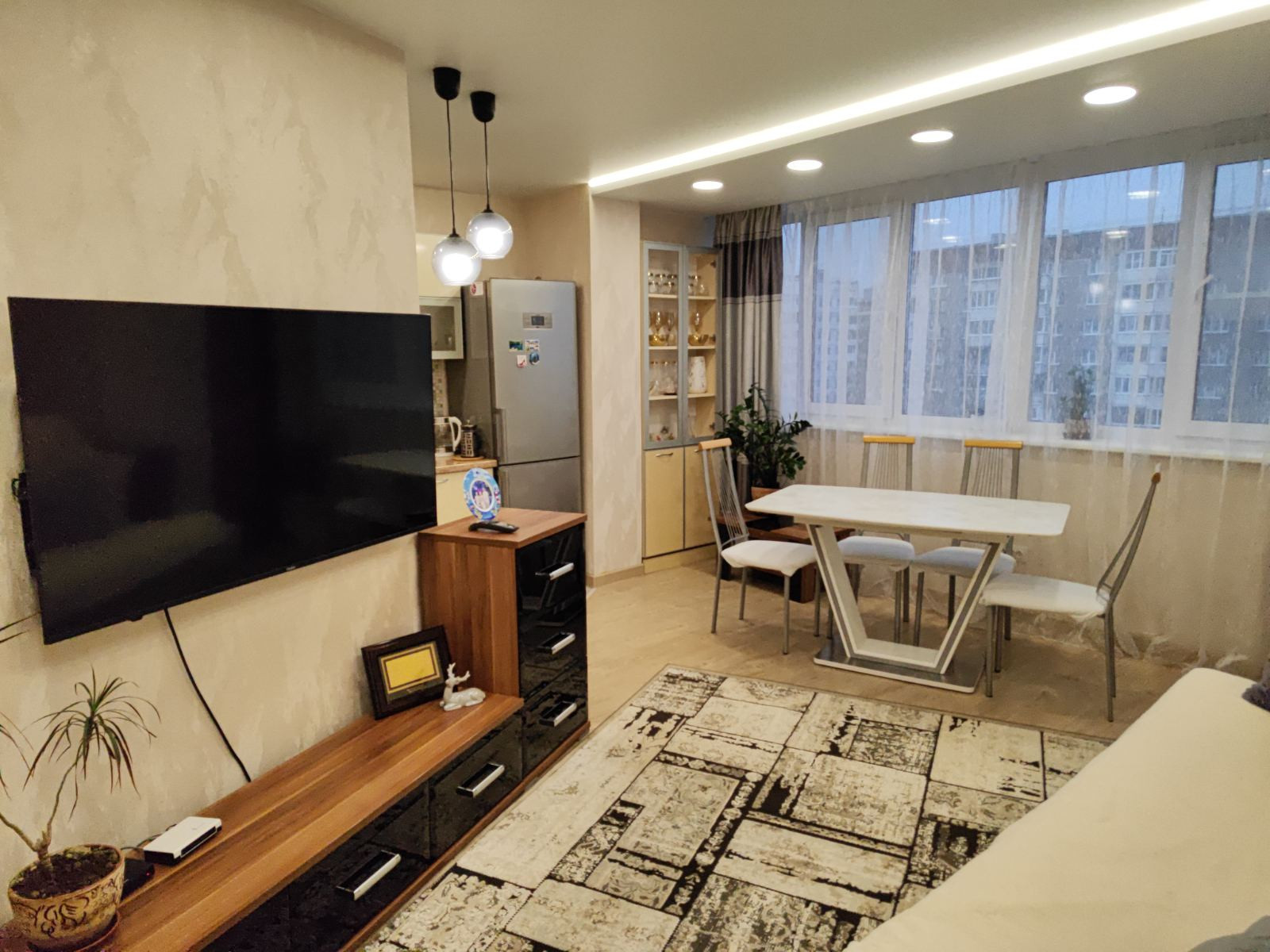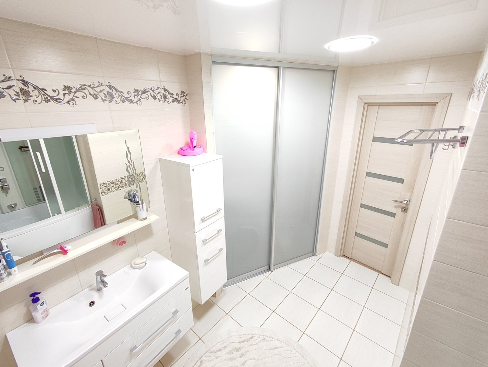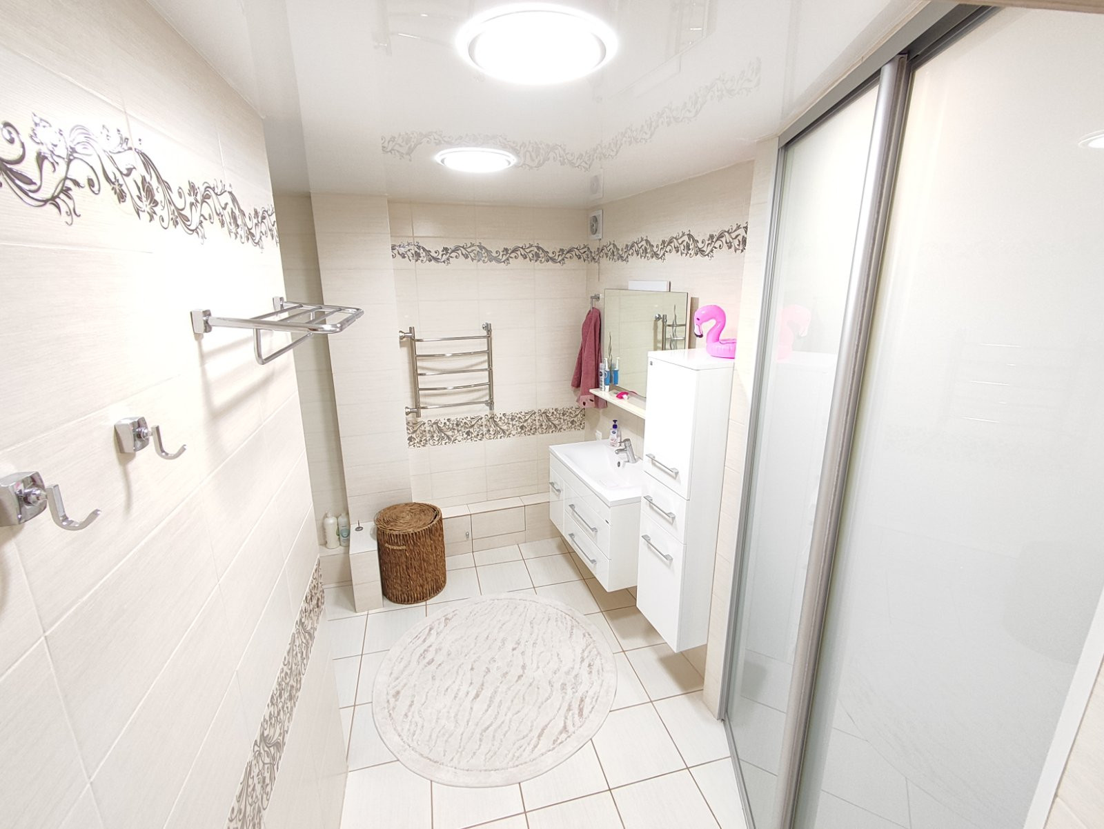 Продам в новом доме 2010 г.п. 3-х комнатную площадью 92 кв.м. и плюс к этому застёклённый балкон 3,7 квадратов. Состояние отличное. Три комнаты изолированные. Сан. узлы раздельные, всё в кафеле, с натяжными потолками, вся сантехника европейская. В просторнейшей ванной комнате полы с регулированным подогревом, закрытый душевой бокс с акриловой ванной, электр. водонагреватель на 50 литров. Качественные добротные межкомнатные двери. В гостинно-кухонной зоне двухуровневые натяж.потолки со встроенной светодиодной подсветкой и шикарной люстрой, ламинат с повышенной степенью защиты от влаги и износа. Остаётся вся техника и мебель, в том числе: кухонная встроенная техника (духовой шкаф «Samsung», варочная панель «Electrolux», вытяжка, посудомоечная машинка), а так же мебель в ванной, на кухне и прихожей, шкафы-купе в спальнях. Окна на разные противоположные стороны (юг-север). Взрослые собственники, ЧИСТАЯ ПРОДАЖА. Без арестов и каких либо обременений.
