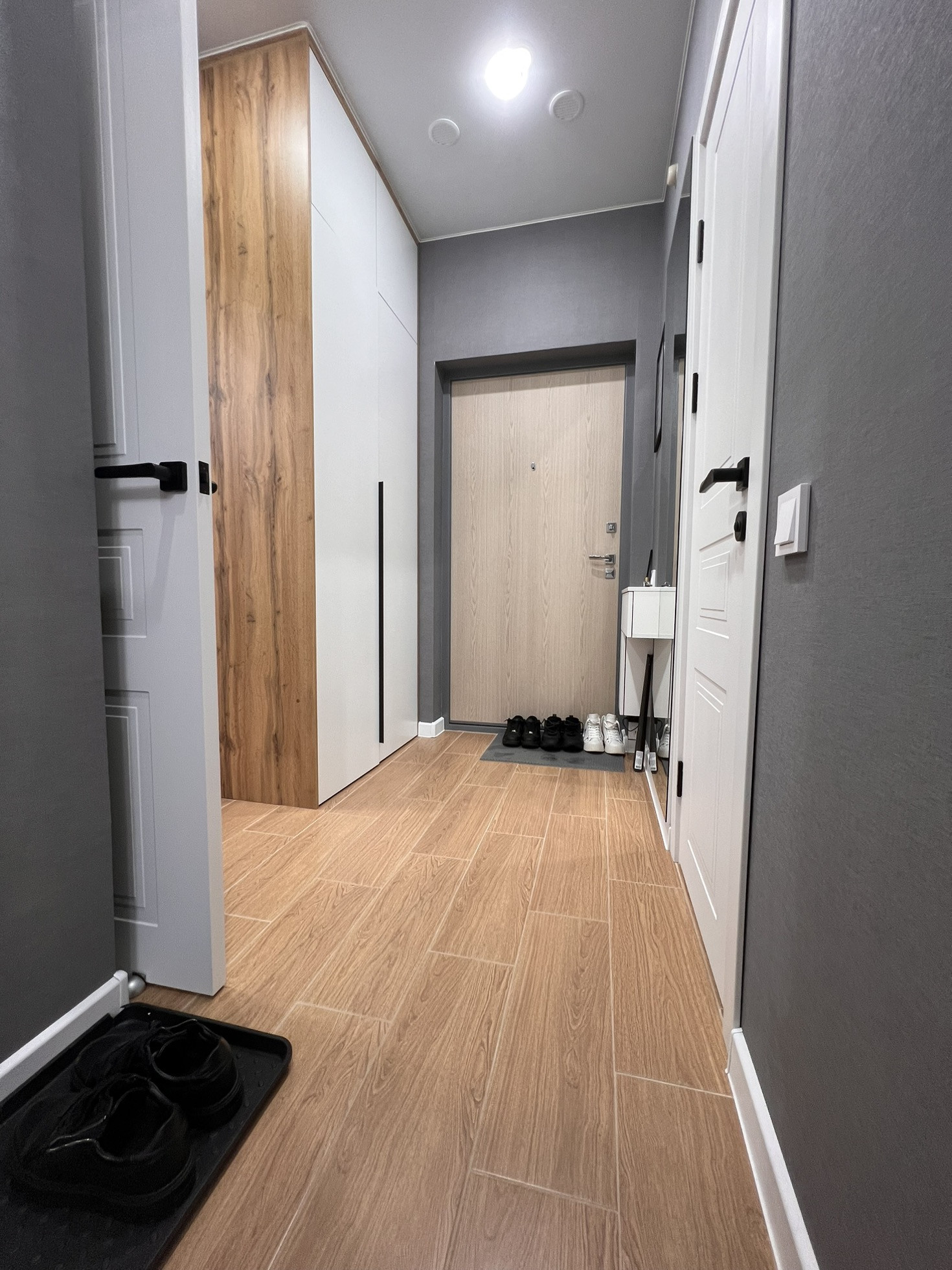 В квартире две комнаты, просторная кухня-гостиная с выходом на балкон и спальная комната, все комнаты изолированы. Установлены межкомнатные двери, просторный коридор. Кухня обустроена современным гарнитуром, с большим количеством ящиков, где можно разложить всю кухонную утварь. Так же встроен духовой шкаф и варочная панель. На кухне большое окно с выходом на балкон, с видом на город.