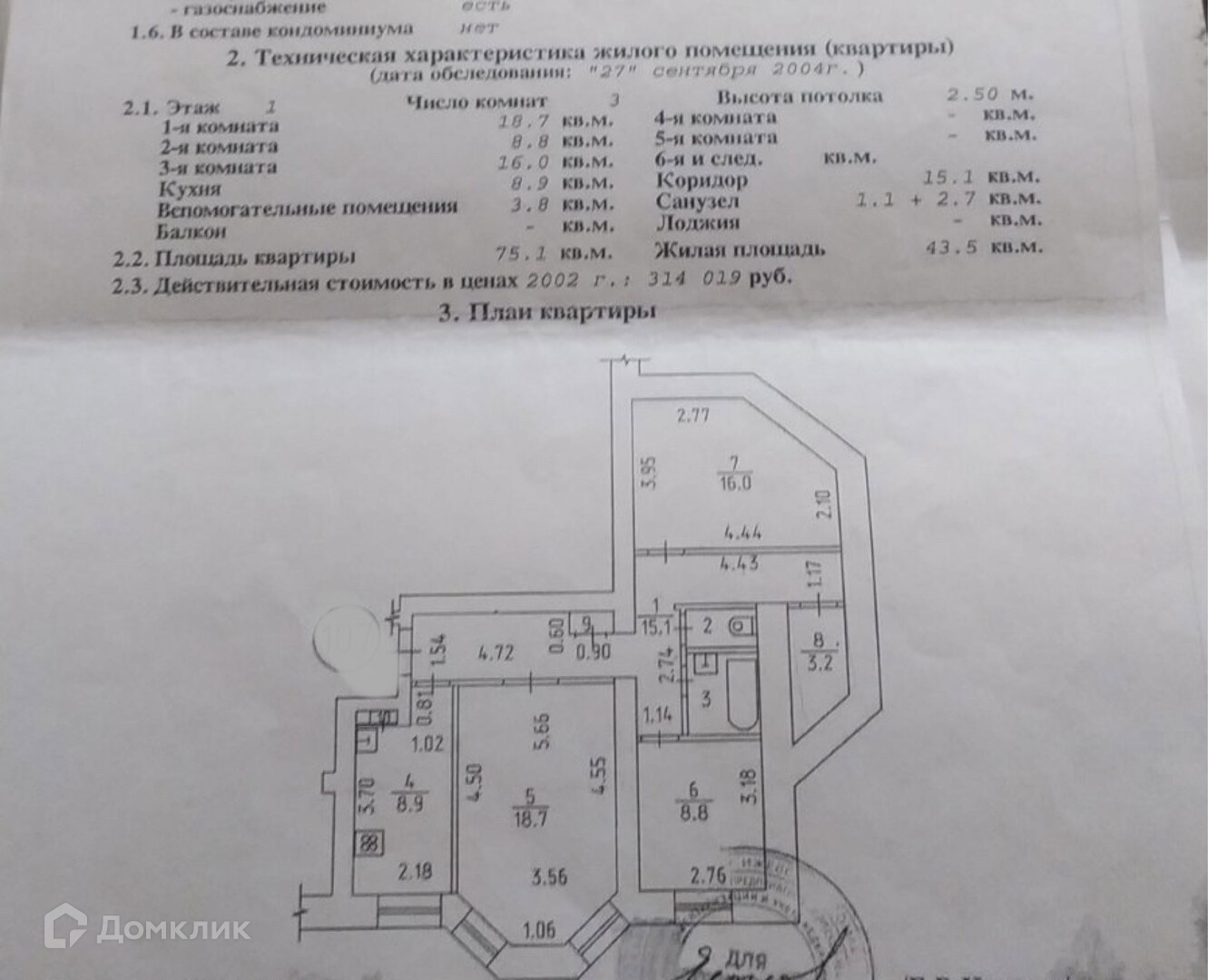 Общая площадь 75.1 м2