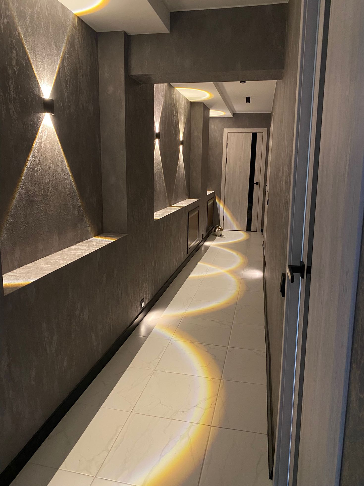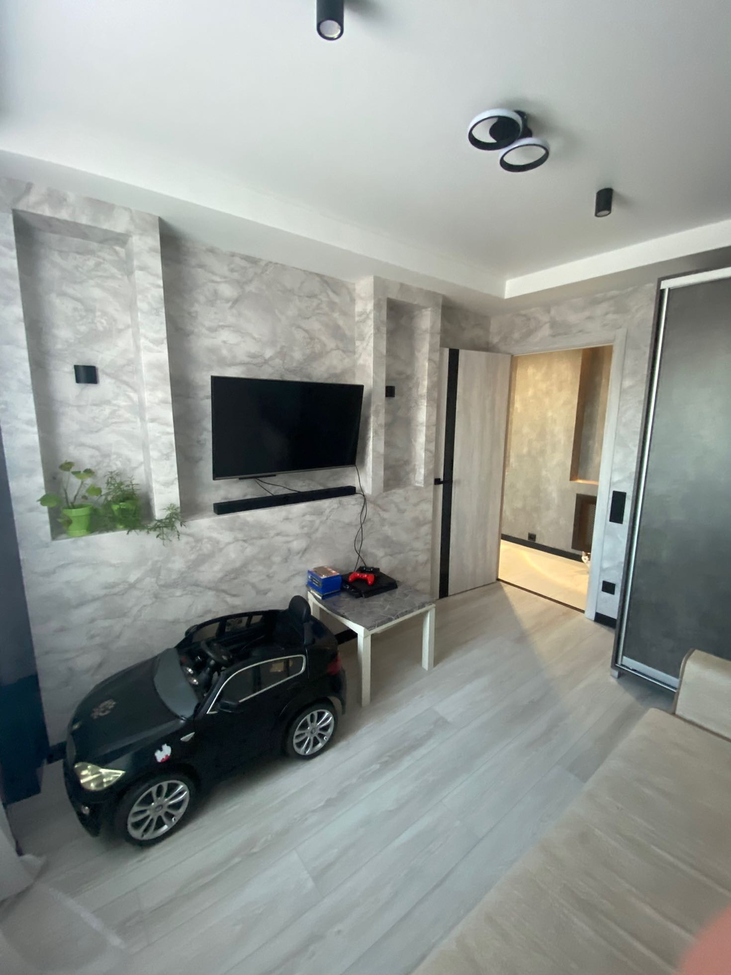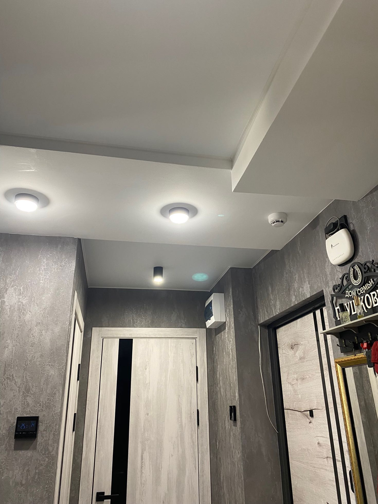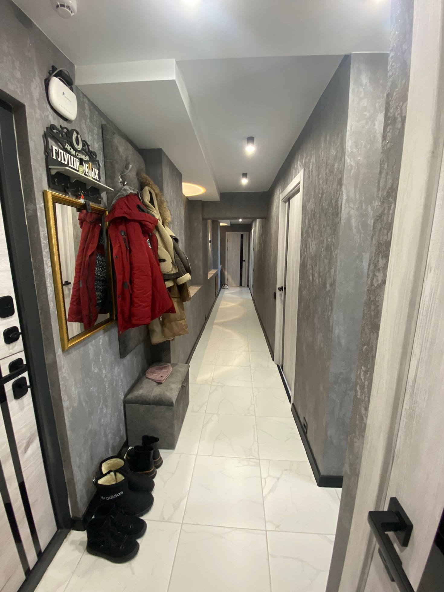 В квартире поменяна эл.проводка(медная),дорогие рамочные розетки и выключатели,стены зашпаклеваны,заштукатурены,на полу лежит качественный ламинат,( в спальнях ламинат на стенах),есть тёплый пол(прихожая,коридор,ванная,кухня,)во всех помещениях интересные натяжные потолки с точечными светильниками,имеются настенные светильники,люстры,сделаны ниши под телевизоры,установлены надежные входные двери,новые межкомнатные двери с магнитной фурнитурой.