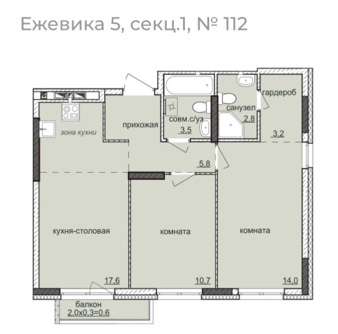 Площадь кухни 17.6 м2