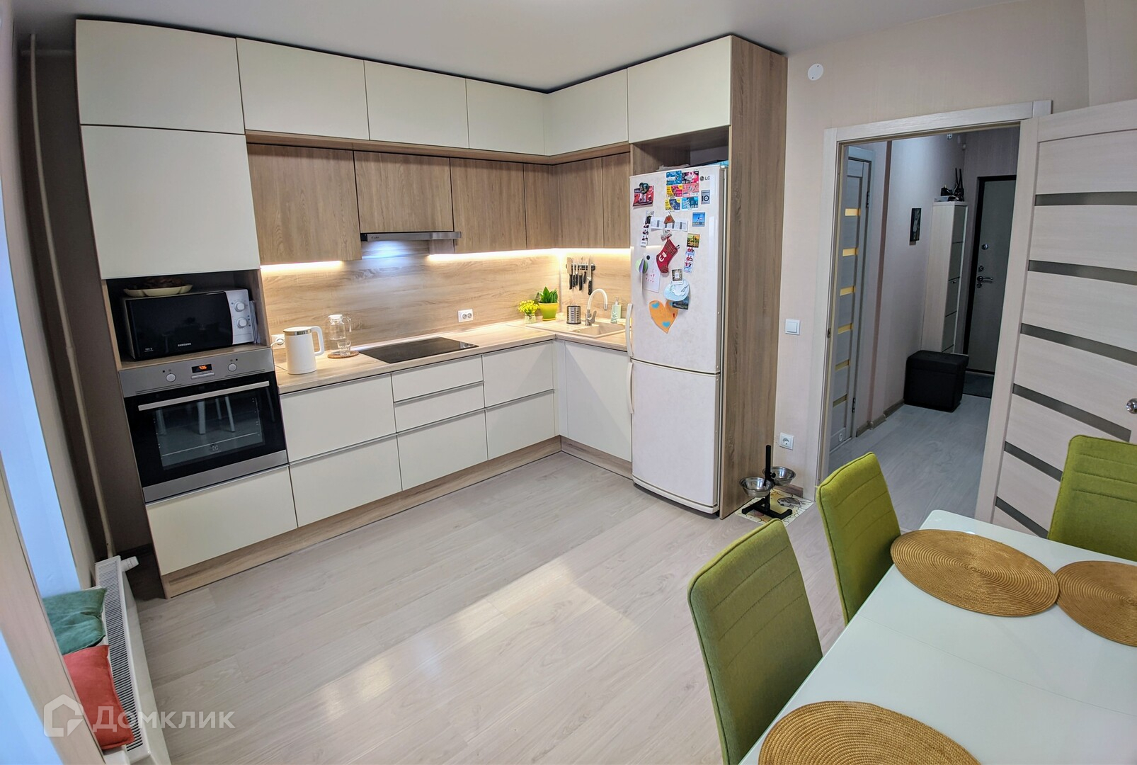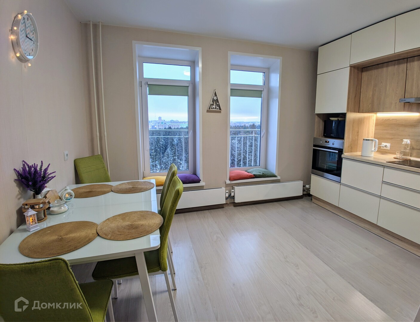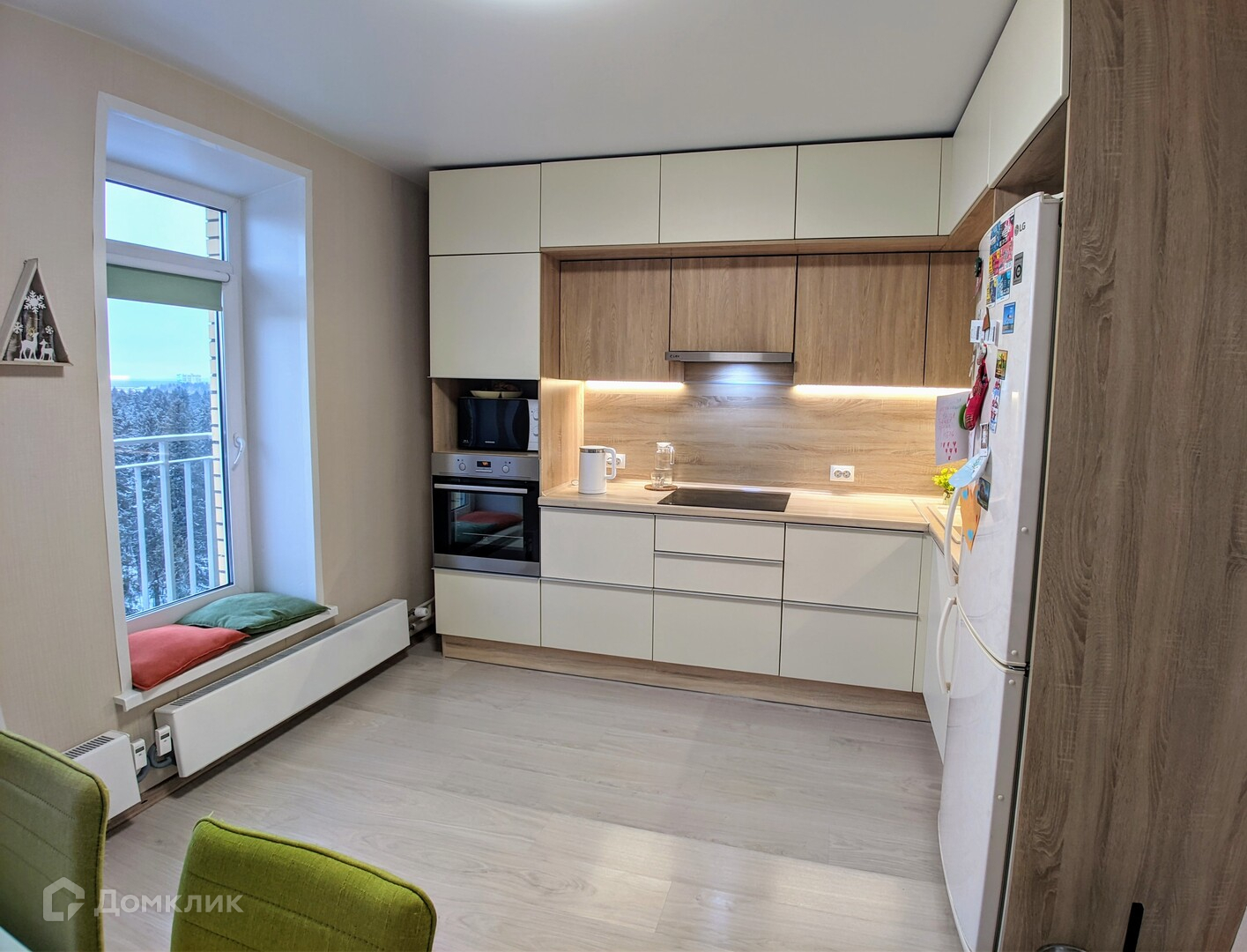 - Все комнаты изолированы, есть место под гардероб. На кухне установлен современный, качественный гарнитур, с красивой зоной подсветки и с большим количеством ящиков и шкафов. Так же встроен духовой шкаф и варочная панель. На кухне два больших окна, с видом на лес и небольшим французским балконом. Оставляем духовой шкаф, индукционную панель и вытяжку!