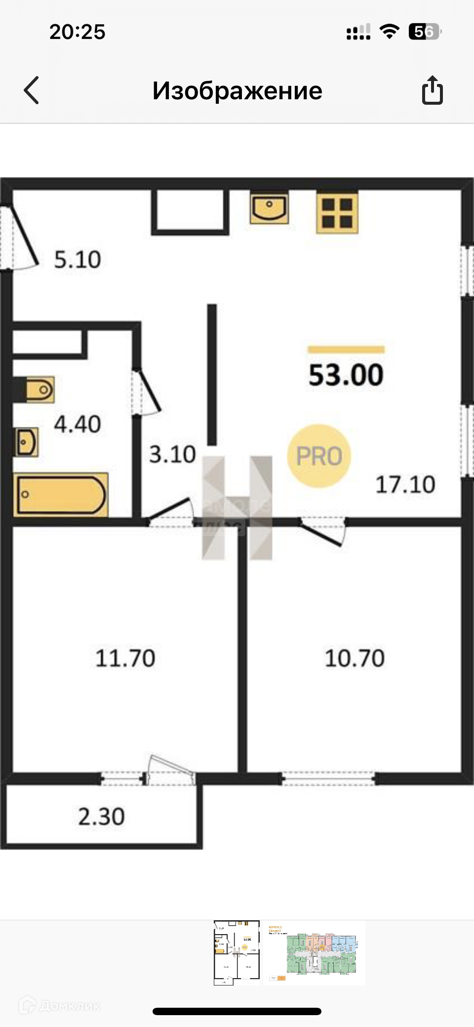 Общая площадь 53 м2