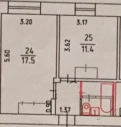 Жилая площадь 17.5 м2