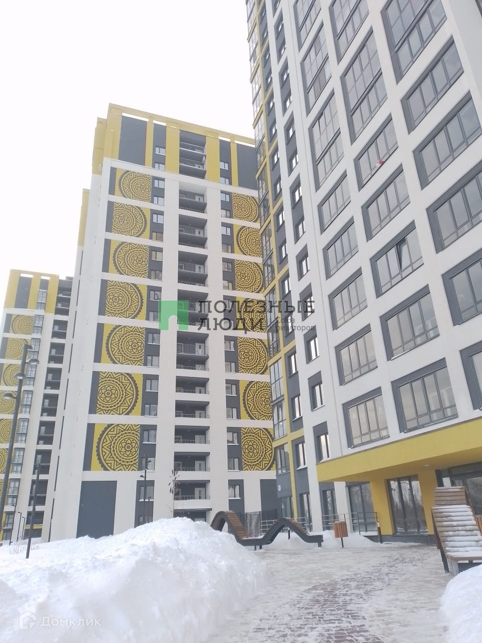Большая детская площадка находится во дворе дома.