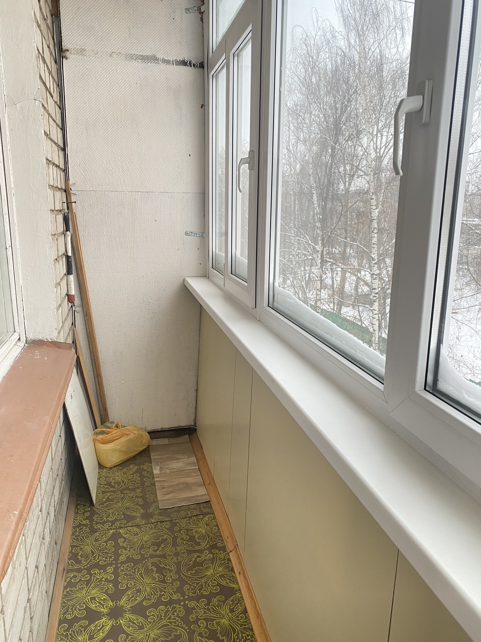 Балкон застеклён, рама ПВХ.
