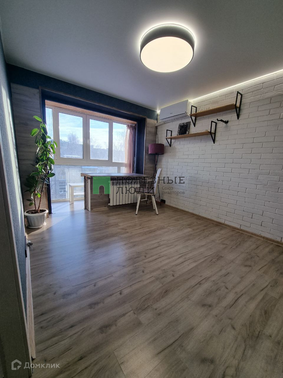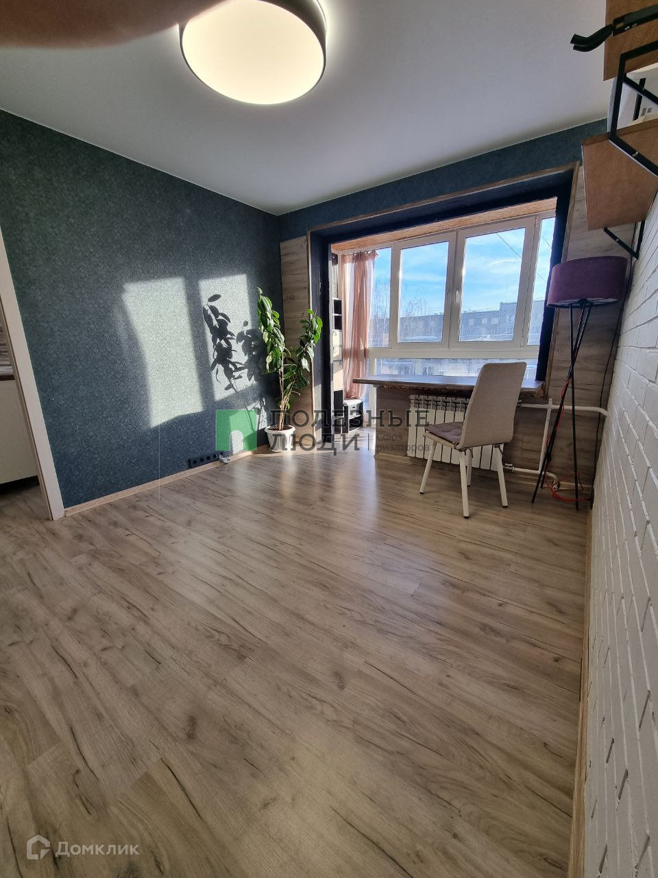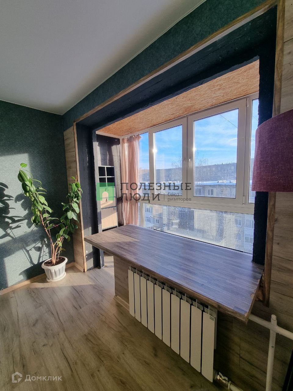 - Балкон с панорамными окнами соединён с комнатой, утеплён и установлен теплый пол с цифровым датчиком температуры.