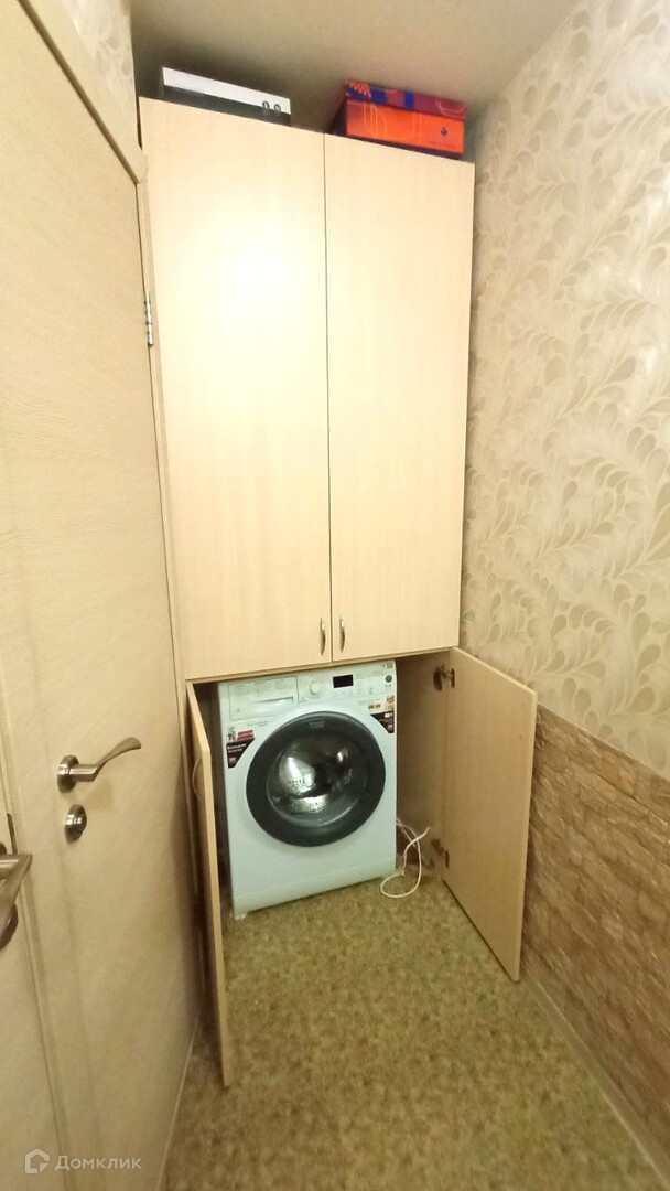 *встроенные шкаф в прихожей, в котором располагается стиральная машина с целью экономии пространства кухни или санузла и вещевые полки