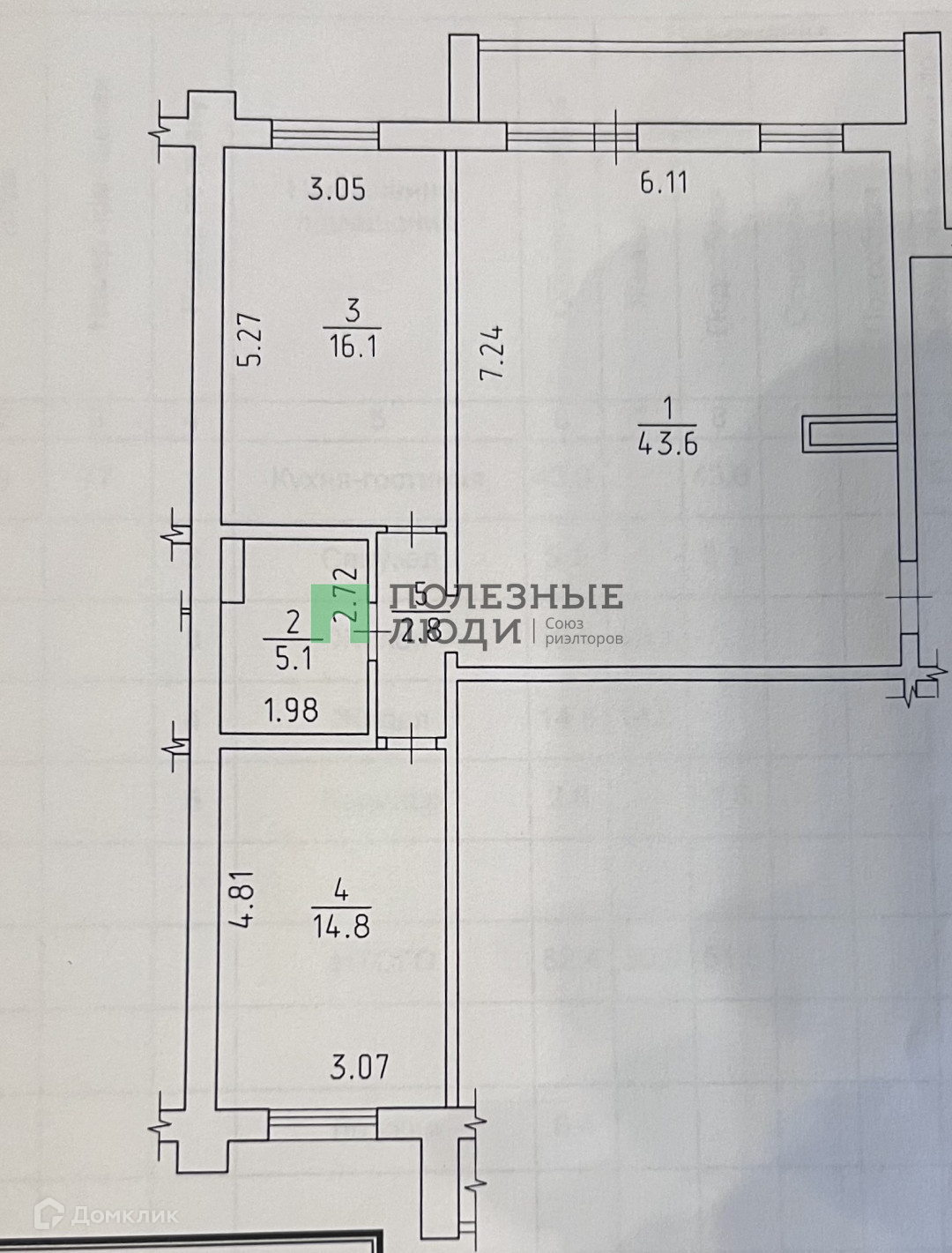 Жилая площадь 64 м2