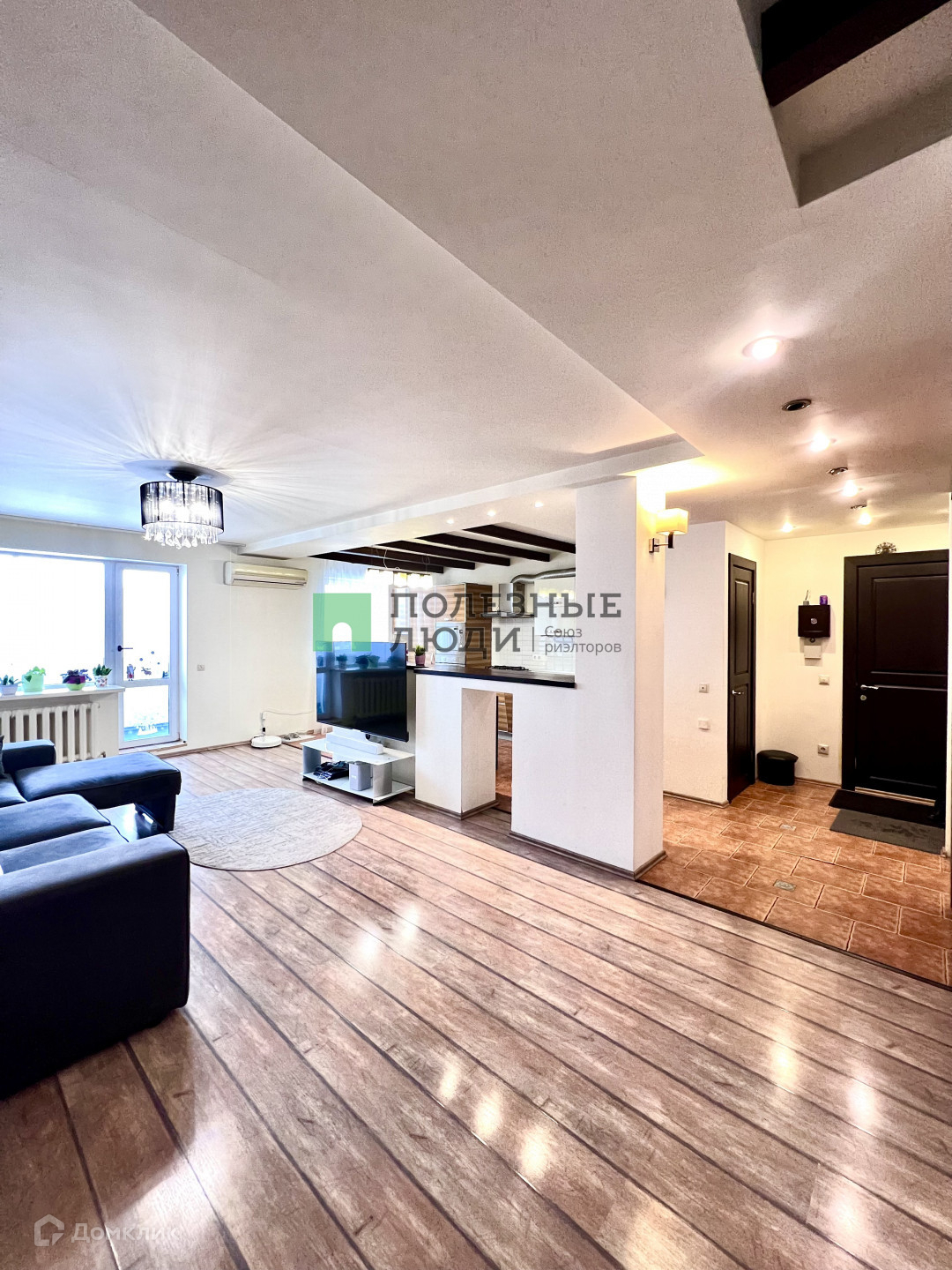 По всей квартире залит пол, хорошая шумоизоляция, дополнительно теплый пол на кухне и в сан узле.